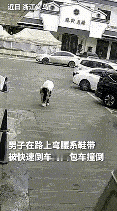 这个小伙子在路上系鞋带,刚刚起身被一个倒车的面包车撞了正着,多亏这小伙子反应及时,一个360翻转躲过去被压的危险,年轻人的身体灵活,如果是岁数大的人可就不好说了,不死也要残,以后干这些事情要小心点,不能在马路上,意外随时都可能发生。