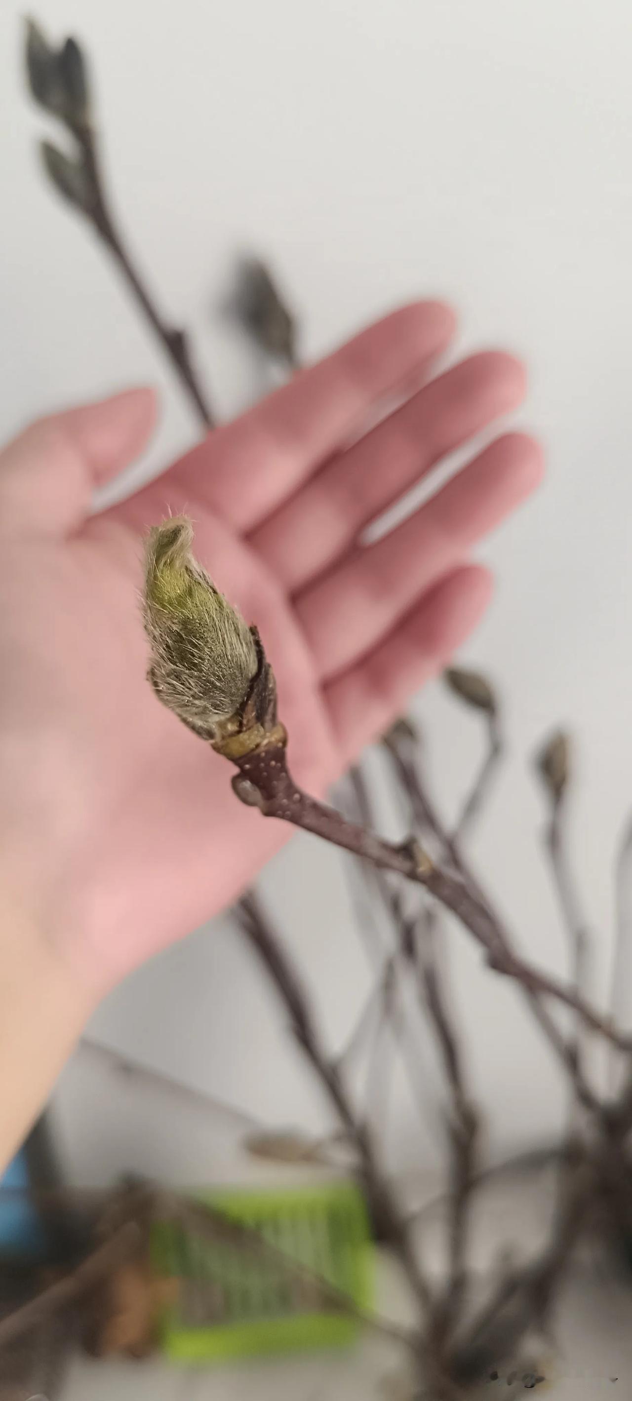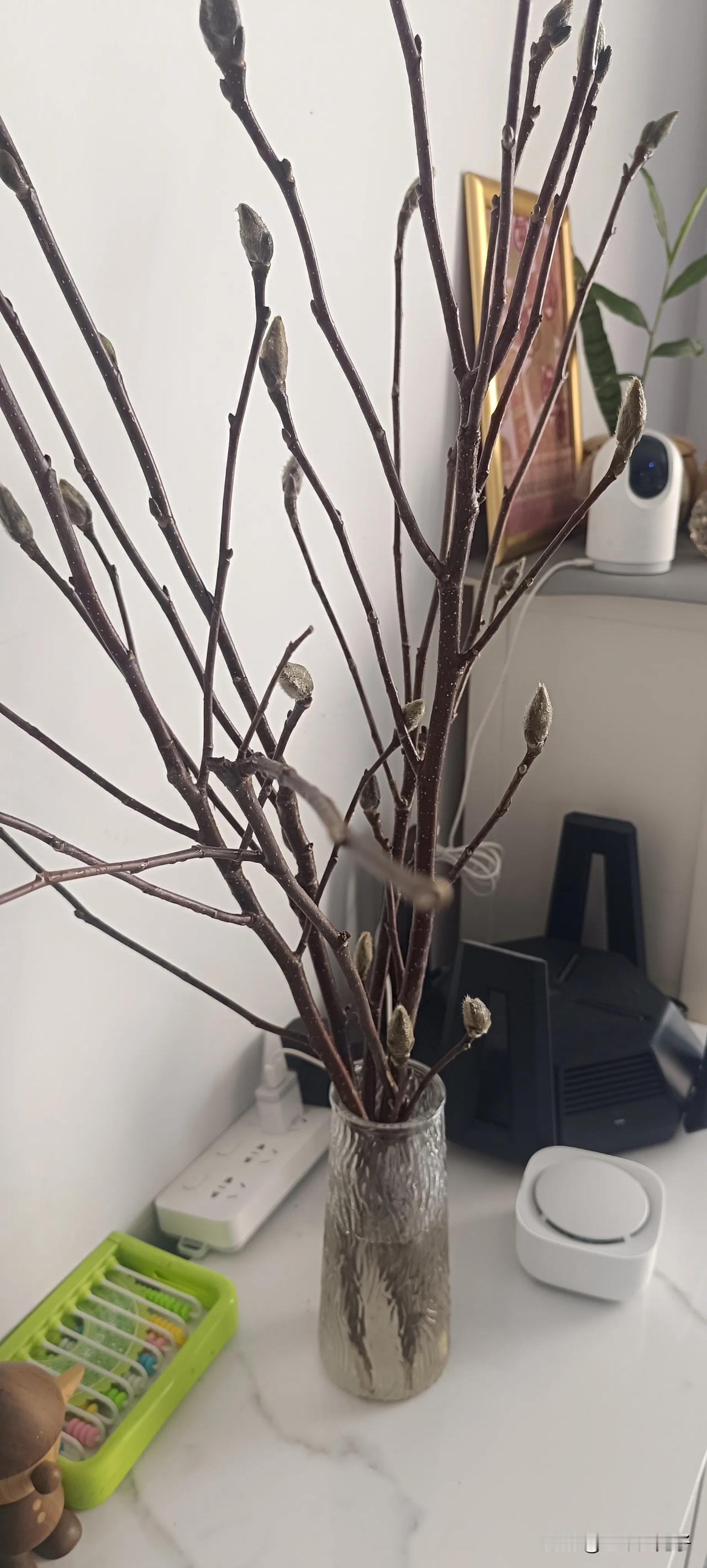 某天刷抖音看到有商家卖鲜切玉兰花的,看着开的很美,心血来潮就下单了,收到货就用水先泡了,修剪一下枝条就插花瓶里,放了些商家送的水培肥料,现在鲜切玉兰花已经养了有一个星期了,花苞看着有变化,显得更鲜活更绿了,再等一段时间应该就会开了吧!期待。玉兰花枝