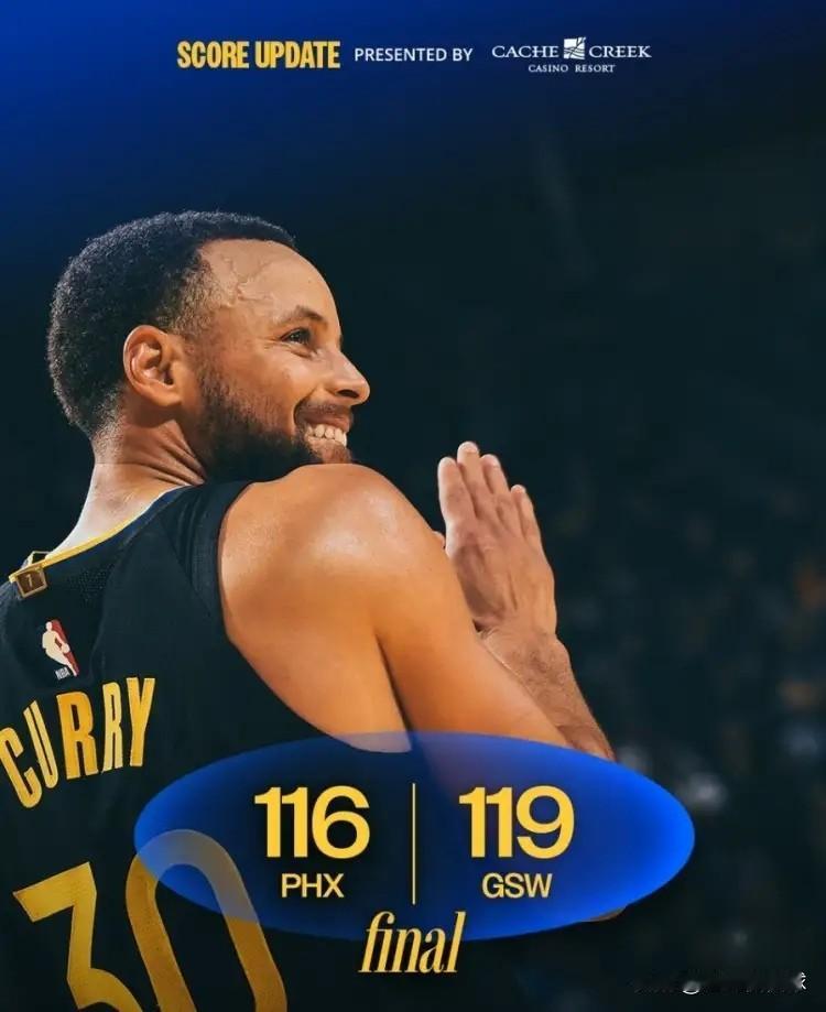 勇士官方真是太懂人情世故了!在今天勇士主场以119:116险胜太阳的赛后,勇士官方第一时间更新社媒晒出了一张赢球海报,让人感到特别欣慰的是,本场比赛砍下28分10篮板6助攻的库里成为了赢球海报的封面人物。 以库里在本场比赛中的表现来看,他确实配得上这份殊荣,尤其是在关键的第四节比赛中库里独取14分,帮助球队赢下了比赛。