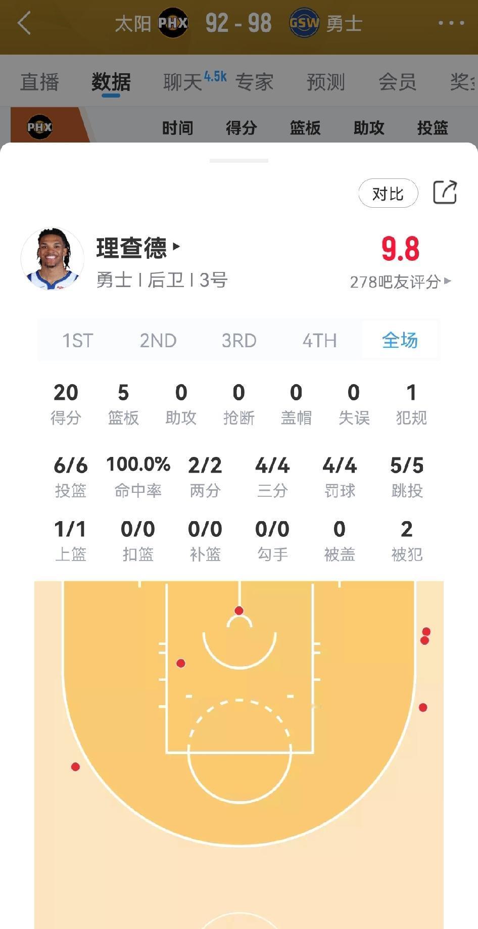 我的天啊,勇士这个理查德今天太牛批了,绝对是乔丹附体了!这命中率不得创NBA历史吗! 今天理查德替补登场,弹无虚发投篮6中6,其中3分球4投全中,罚球4罚全中,以百分之百的命中率砍下20分5篮板! 科尔你真是老眼昏发,队内有如此一块宝玉不用。甚至还说理查德太年轻了,不具备登场打球的状态。结果被小伙子打脸打得咣咣响了吧! 科尔真的应该好好的反思下,大胆的启用队内的年轻球员,别固执的守住几个老家伙一直用,给年轻人一个机会的同时也就是给自己机会!