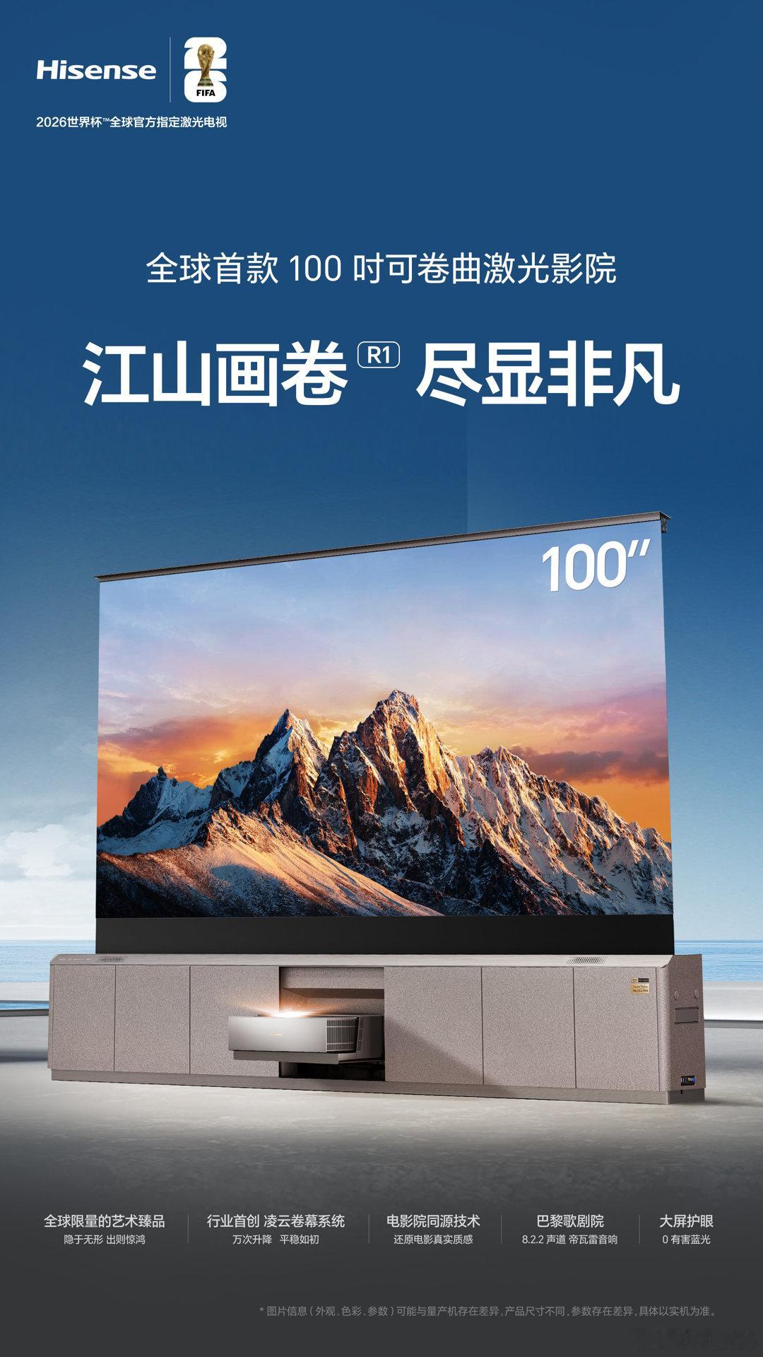 作为一名资深球迷,世界杯就像一场四年的盛宴,承载着太多的情感和激情!看一场世界杯的比赛直播,就是一场沉浸式的高级享受。对于无法现场观赛的球迷们,清晰的屏幕画质对于保障和提升观赛体验至关重要。海信世界杯定制产品亮相海信RGB-MiniLED电视,作为2026年美加墨世界杯官方指定电视,采用全球领先的RGB-Mini LED背光芯片,精准呼应赛事红、绿、蓝三大主题色,从技术内核到视觉表达的深度契合,让“三生万色”的显示魅力与世界杯的激情氛围完美共振,每一抹色彩都忠于赛场本真,每一个瞬间都尽显极致沉浸,让广大球迷提前解锁三倍清晰、三倍酣畅的顶级观赛体验。海信激光电视,可以实现屏幕升起即是世界杯现场,收起是艺术品。多声道与帝瓦雷巴黎歌剧院联合调校,2.3m声学柜体,12个发声单元,不仅能做到画面仿佛在现场,连呐喊声也仿佛如临现场。作为全球首款可卷曲激光影院,世界杯的仪式感,从要从R1的巨幕升起开始!