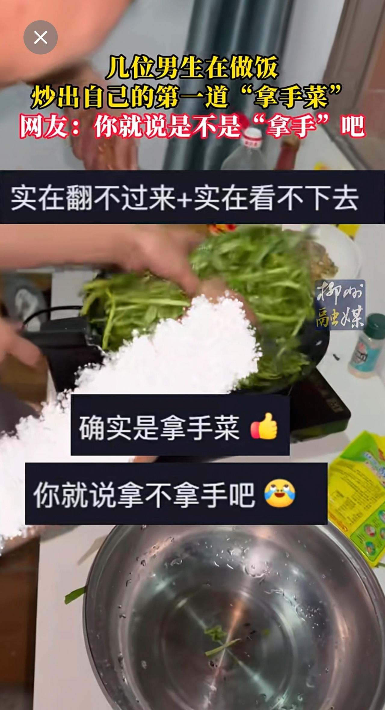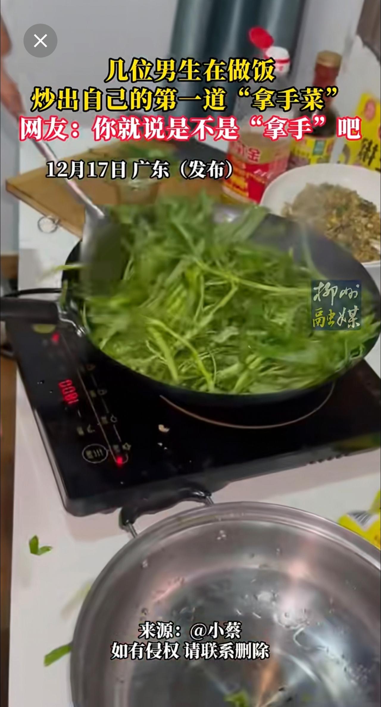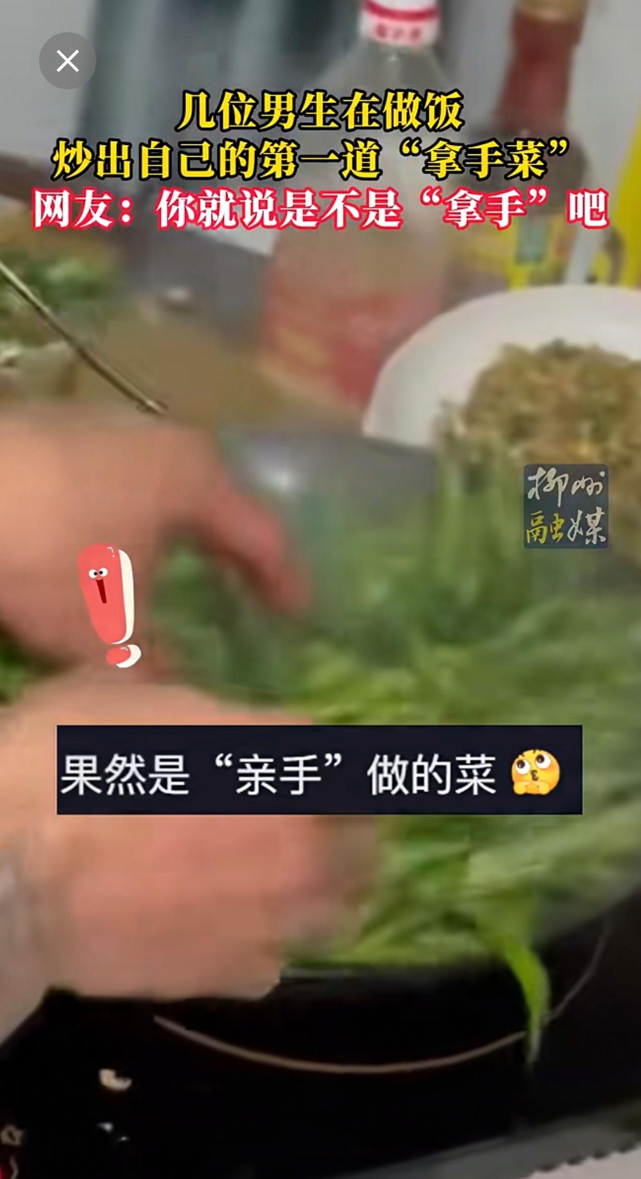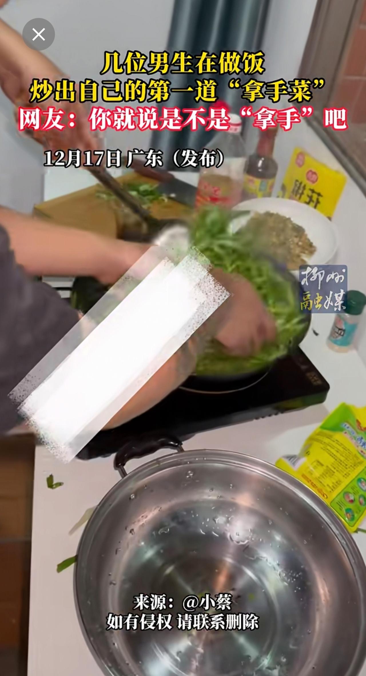 男生在做饭炒出自己的第一道“拿手菜”!你就说是不是“拿手”吧~更多新闻 欢迎关注@柳州1号