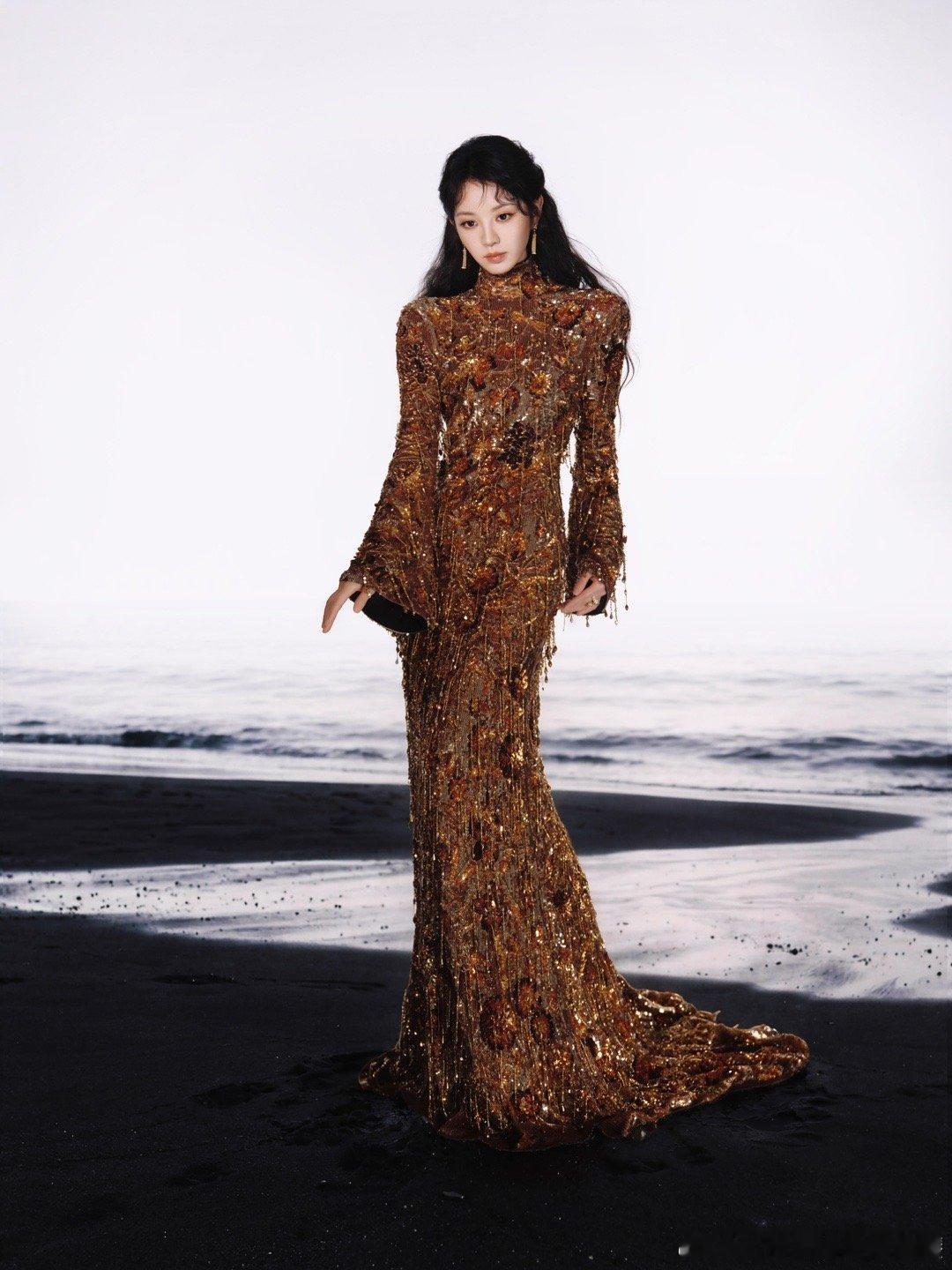 但凡张天爱身上有一点赘肉都穿不了这个衣服