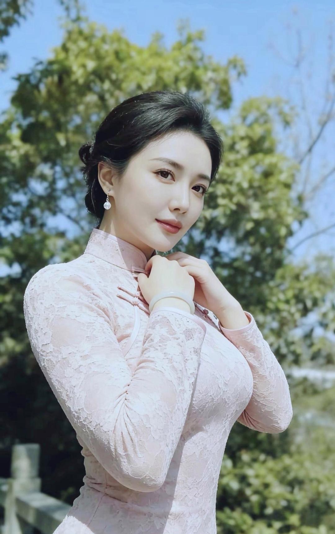 姐姐身穿粉色蕾丝旗袍,宛如从民国画卷中走出的古典佳人!盘发雅致,耳坠轻摇,一举一动尽显东方婉约。蕾丝勾勒出曼妙曲线,立领盘扣传承千年风雅,举手投足间,是现代与古典的完美交融,这气质这韵味,真的绝了!好身材性感女神 性感 旗袍风上衣
