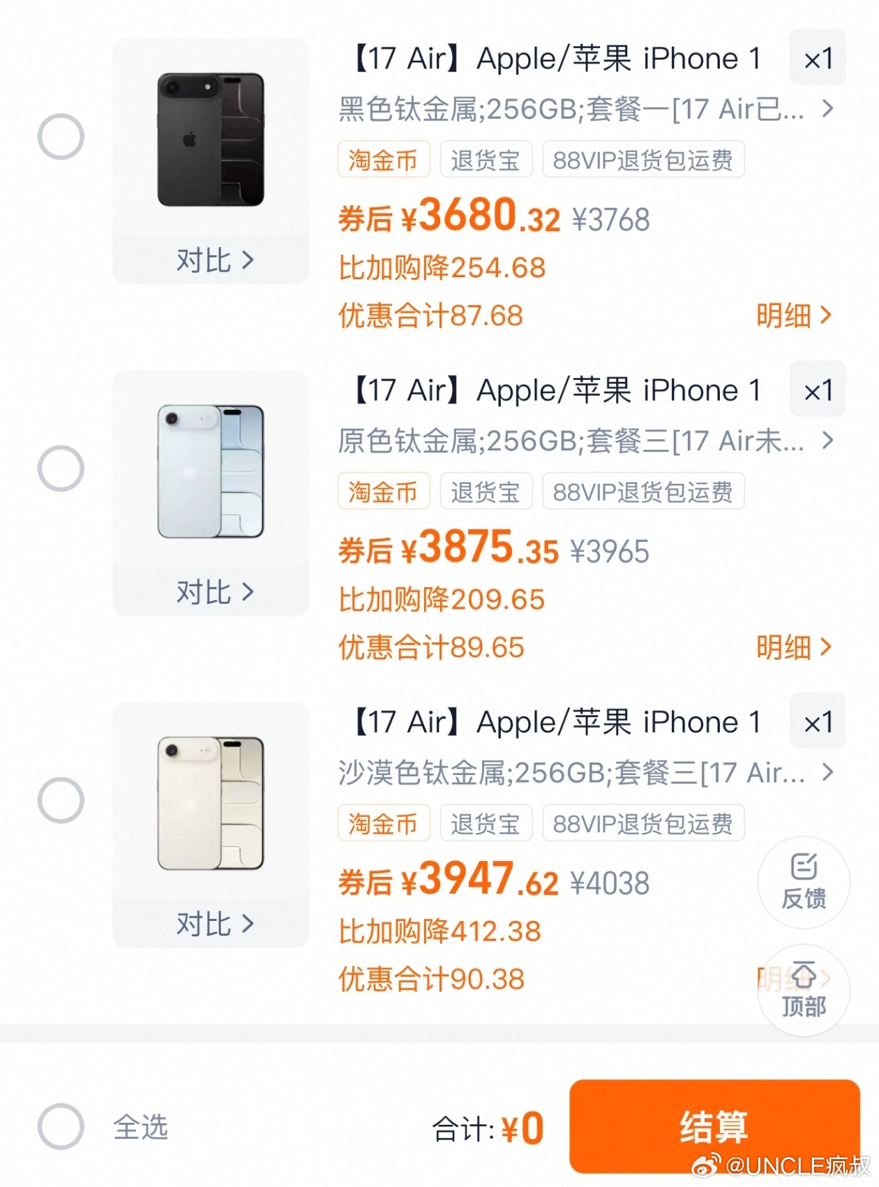 什么?iPhone Air美版掉价已经掉成这样子啦我可要当成touch买了啊