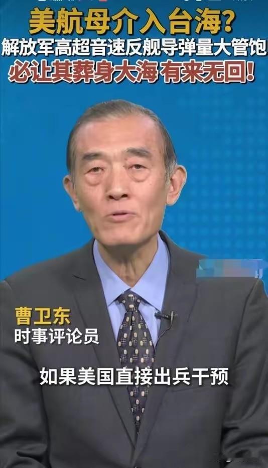 2. 军事专家:美国若出兵干预台海必用航母 需掂量解放军高超音速导弹:军事专家曹卫东说美国干预台海需用航母,现在美军航母来台海得惦量解放军的高超音速导弹,比如东风-21D(覆盖第一岛链)、东风-26(直达第二岛链),它们末段超高音速、能机动变轨,专门打海上移动目标,还有鹰击系列、歼-20等配合,解放军有能力让来犯者付出代价。
