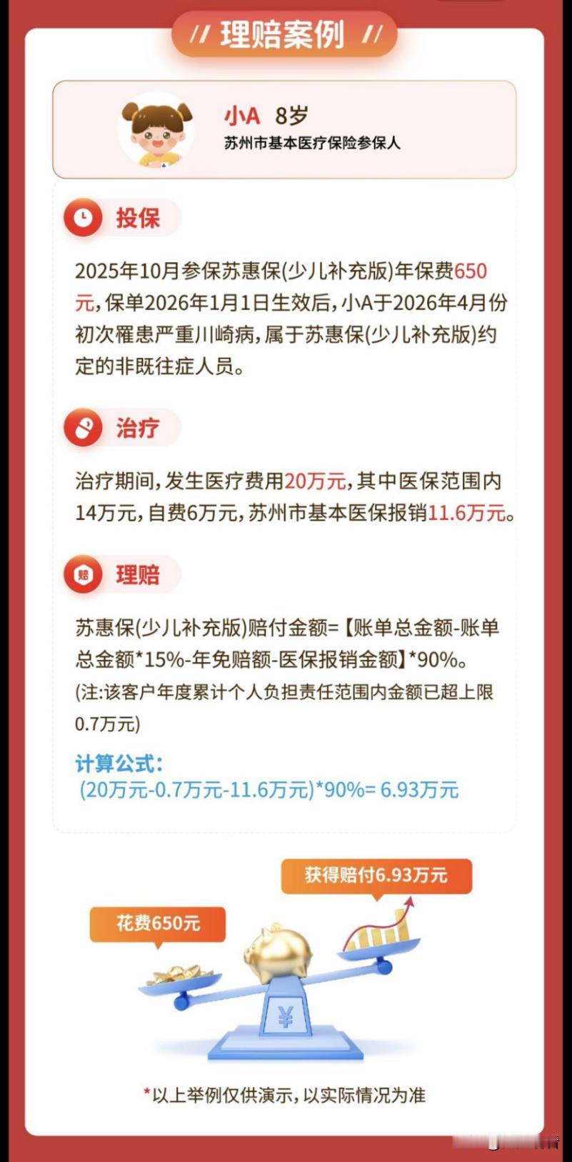 家有萌娃的苏州家长们注意啦!是不是总担心孩子生病,一趟医院跑下来钱包大出血?别愁!专为咱苏州娃量身打造的苏惠保(少儿补充版)2026暖心上线,这波福利必须狠狠接住! 先划重点!这款少儿补充医疗险来头可不小,是由苏州市医疗保障局、教育局等多个官方部门指导,东吴人寿、平安健康等多家实力保险公司联合承保,靠谱程度直接拉满,给娃投保绝对放心! 再看适用人群,只要是苏州市基本医疗保险参保人,年龄在0-17周岁的娃都能投,没有等待期,投保后就能享保障,保障期限足足一年,给娃稳稳的守护。而且投保时间从现在就开始了,截止到12月31日,错过可就得再等一年,家长们可千万别忘! 最让人惊喜的还是它的保障责任,简直是全方位无死角!门急诊及住院医疗保险金200万、特定疾病门急诊及住院医疗保险金200万、包含CAR-T在内的恶性肿瘤特定药品费用保险金200万、质子重离子治疗保险金200万,总保额直接飙到800万!不管是医保内还是医保外的药品、检查、治疗费用,统统都能覆盖,孩子看病再也不用纠结费用,家长也能少掉好多头发。 当然啦,这款少儿补充险的亮点还远不止这些,五大优势直接戳中家长的心巴! ①医保个账直接付,简直不要太方便!只要苏州市职工医保个账余额足够,就能直接给孩子缴费参保,实时划扣,不用额外掏现金,相当于用医保余额给娃再添一层保障,这羊毛不薅白不薅! ②门诊住院都可报,打破了很多医疗险只报住院的局限。孩子头疼脑热去门诊,或者不小心生病住院,产生的医保内外费用都能报销,全方位守护娃的健康。 ③医保内外都涵盖,保障范围超广!门急诊、住院、特定疾病、特药、质子重离子治疗等,不管是医保目录内还是目录外的费用,都在保障范围内,家长再也不用为高额自费药发愁。 ④指定医院0免赔,报销门槛直接降为0!非既往症参保人在本市医保定点社区医院的门急诊及住院医疗费用,没有免赔额,花多少报多少(按约定比例),大大减轻了就医负担,小毛病去社区医院也能省钱。 ⑤既往症可保可赔,这一点真的太良心了!很多医疗险都把既往症人群拒之门外,而苏惠保(少儿补充版)2026参保不限健康状况,就算娃有既往症,也能按保障约定获赔,给特殊健康状况的孩子也送上了一份保障。 家有娃的苏州家长们,这么划算又靠谱的少儿补充医疗险,真的很难不心动!800万保额保驾护航,五大亮点直击痛点,关键是投保截止到12月31日,时间不等人,赶紧给家里的娃安排上,给孩子一份稳稳的健康保障!