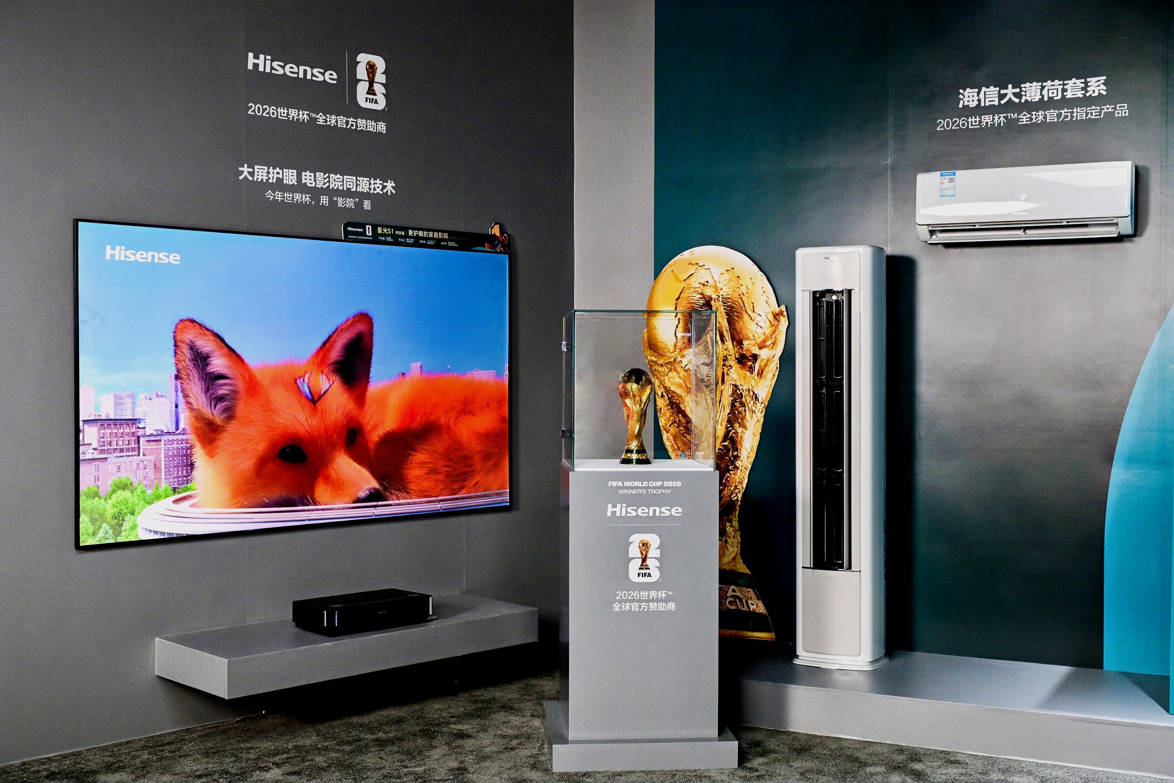 海信世界杯定制产品亮相 四年一度的世界杯又要来了!世界第一大运动自然配有顶级伙伴。作为2026年美加墨世界杯全球官方赞助商的海信,把大力神杯带来了国内免费公开展出。海信RGB电视采用全球领先的RGB-Mini LED背光芯片,更清晰、更酣畅、更直接的观赛体验宛如身临其境; 海信激光电视可实现屏幕升起即是世界杯现场,你想要的仪式感全都在此实现;夏天看世界杯怎能少了空调?海信大力神空调采用星闪人感智慧风技术,精准定位主动实现“风随人动”。看着比赛、喝着啤酒、吹着微风,惬意不过如此~有看、有喝,又怎能少得了“吃”海信真空冰箱行业首创的真空磁场保鲜技术,诗娴多样看球美食时刻新鲜,60分钟智能制冰,和朋友们举杯共同庆祝胜利时刻。属于世界杯饕餮大餐赶紧排上日程吧!活动现场也诞生了新的吉尼斯世界纪录——最多人组成的大力神杯图形。一年又一年的看球搭子,还得是海信