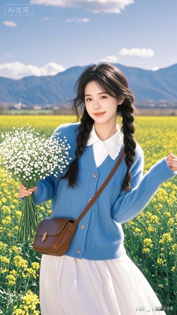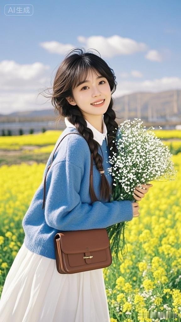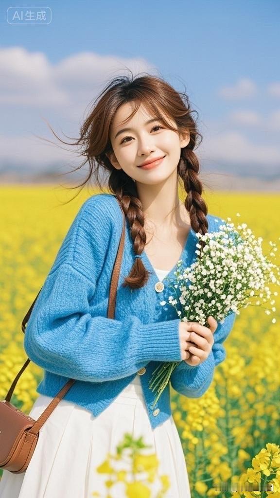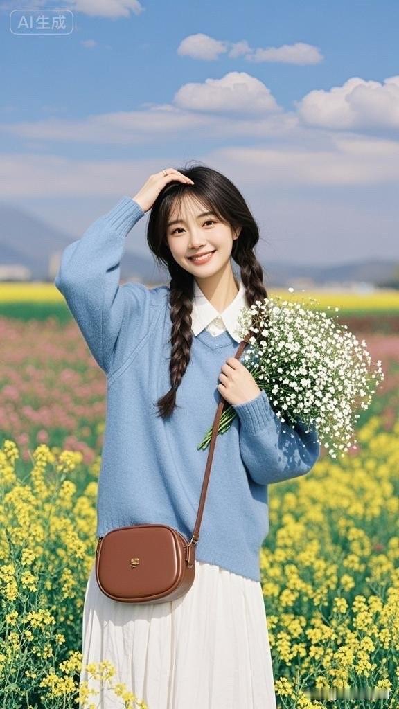花田里的小仙女,手捧花束笑盈盈。