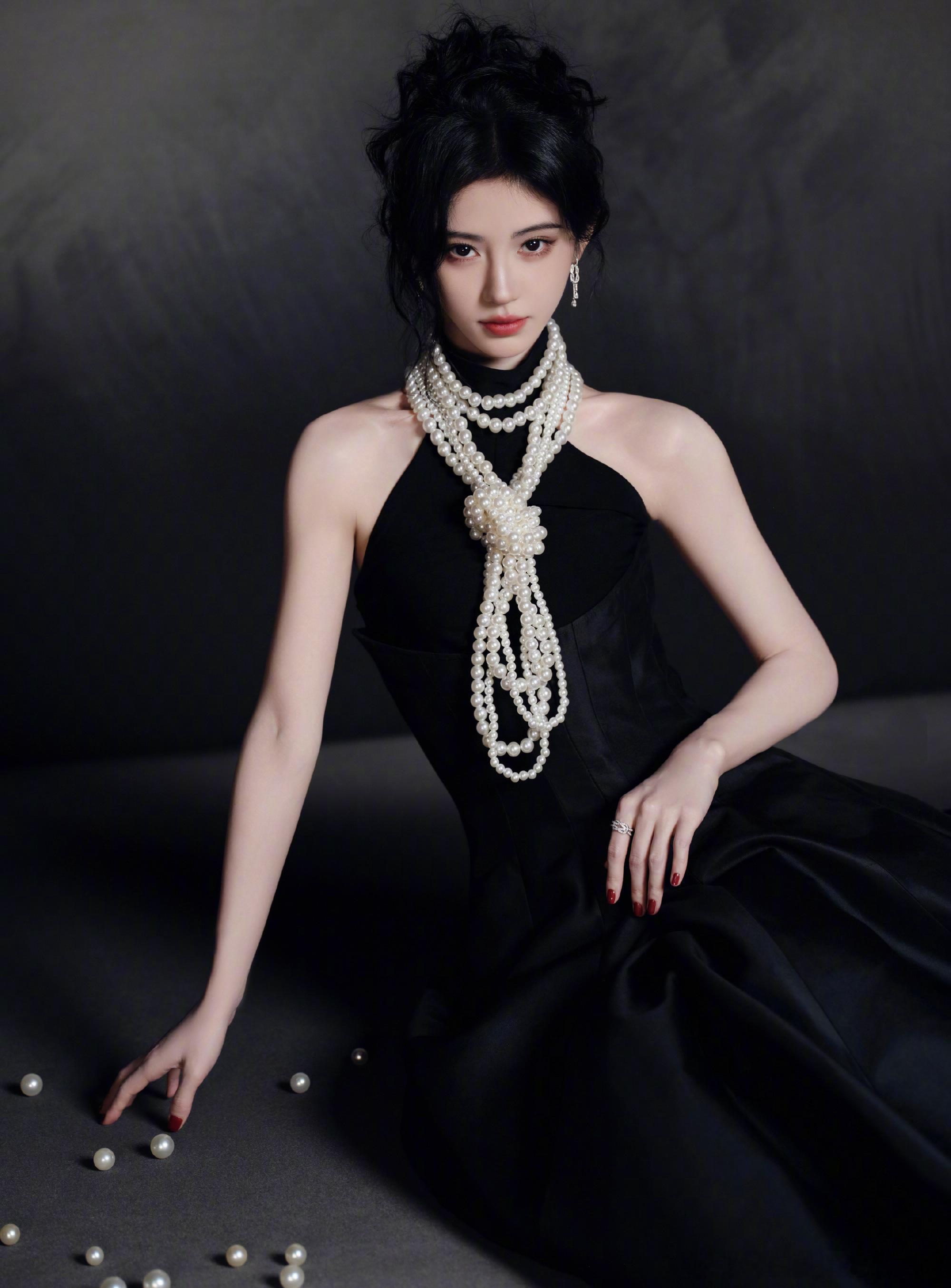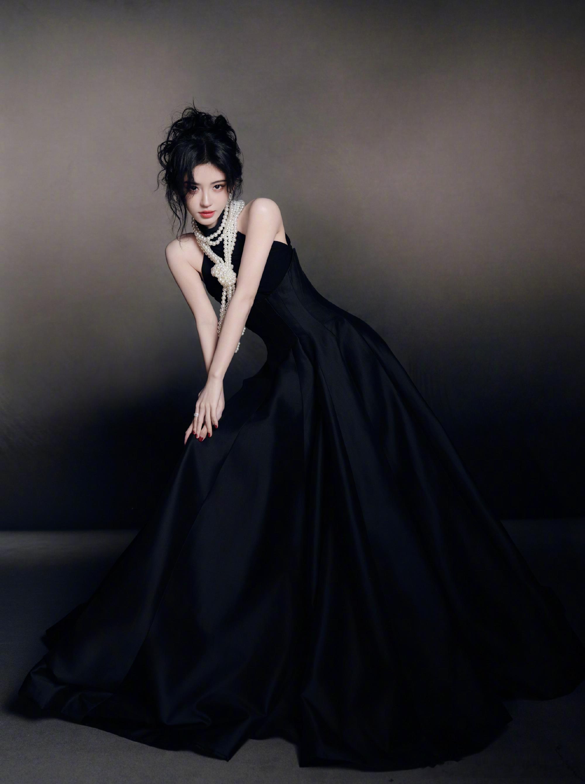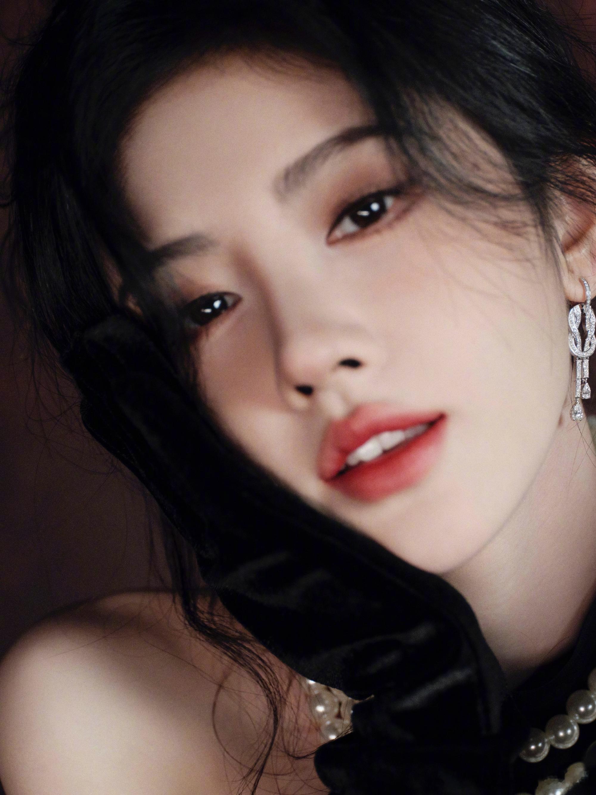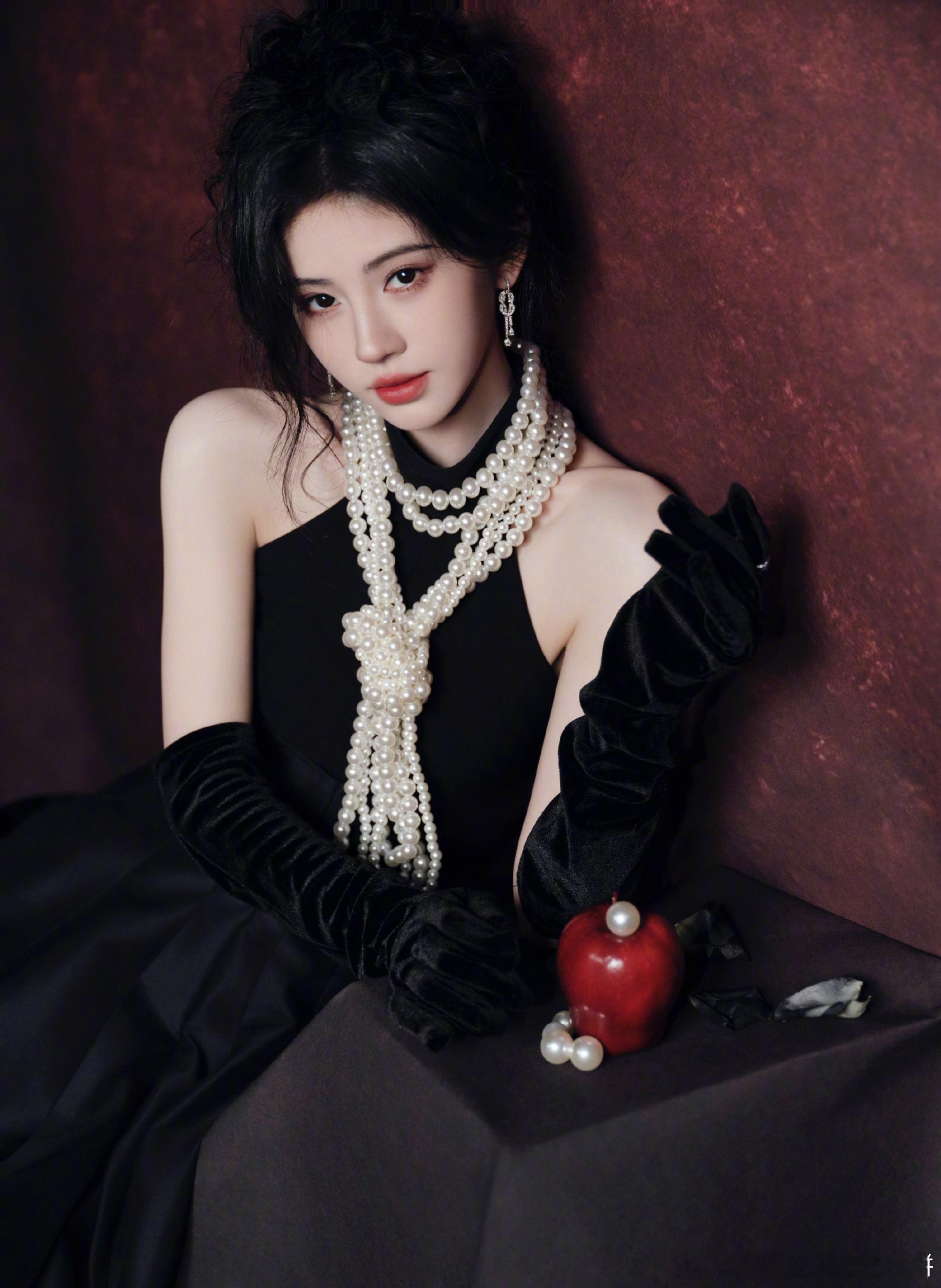 鞠婧祎今天有一点复古华贵风格,漂亮的
