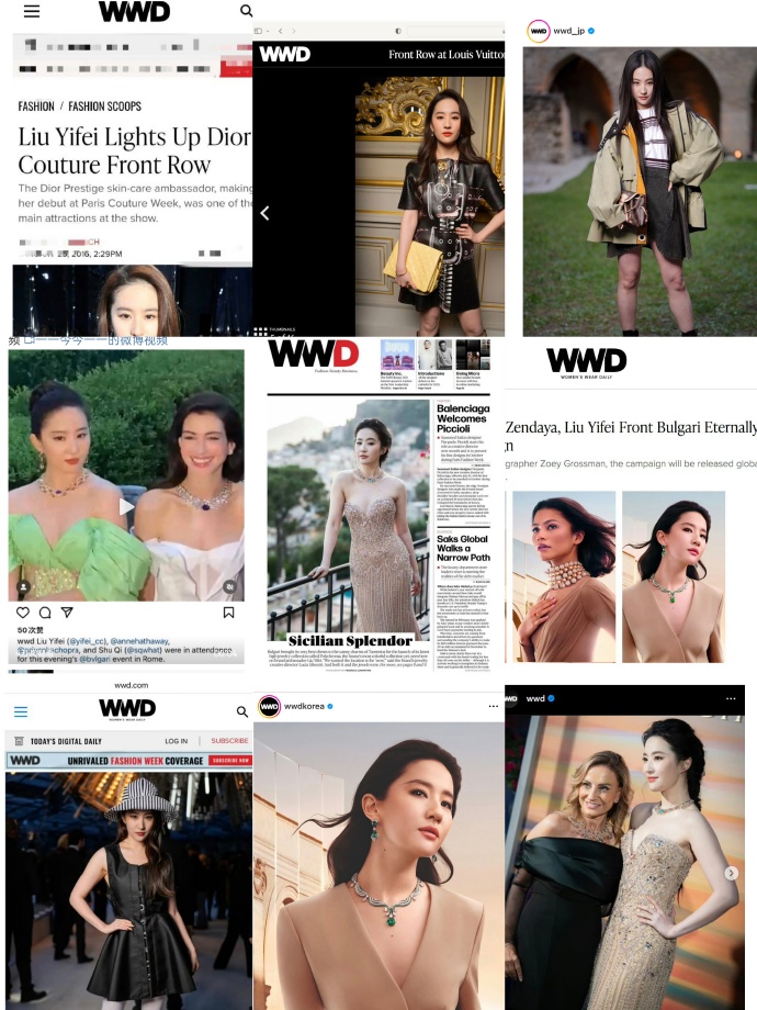 部分WWD报道的活动,还有WWD日报封面,内娱唯一待遇刘亦菲强