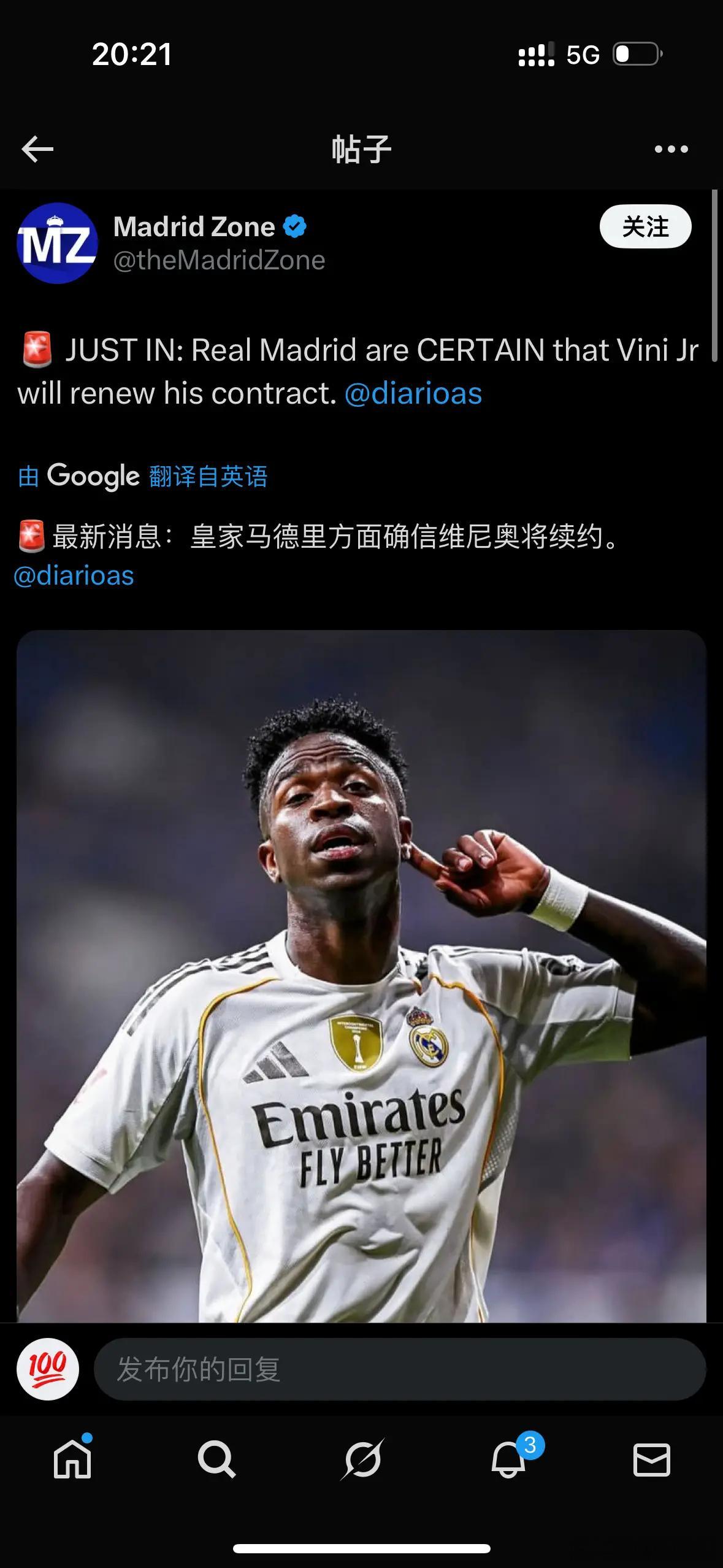 最新消息:皇家马德里方面确信维尼修斯将续约