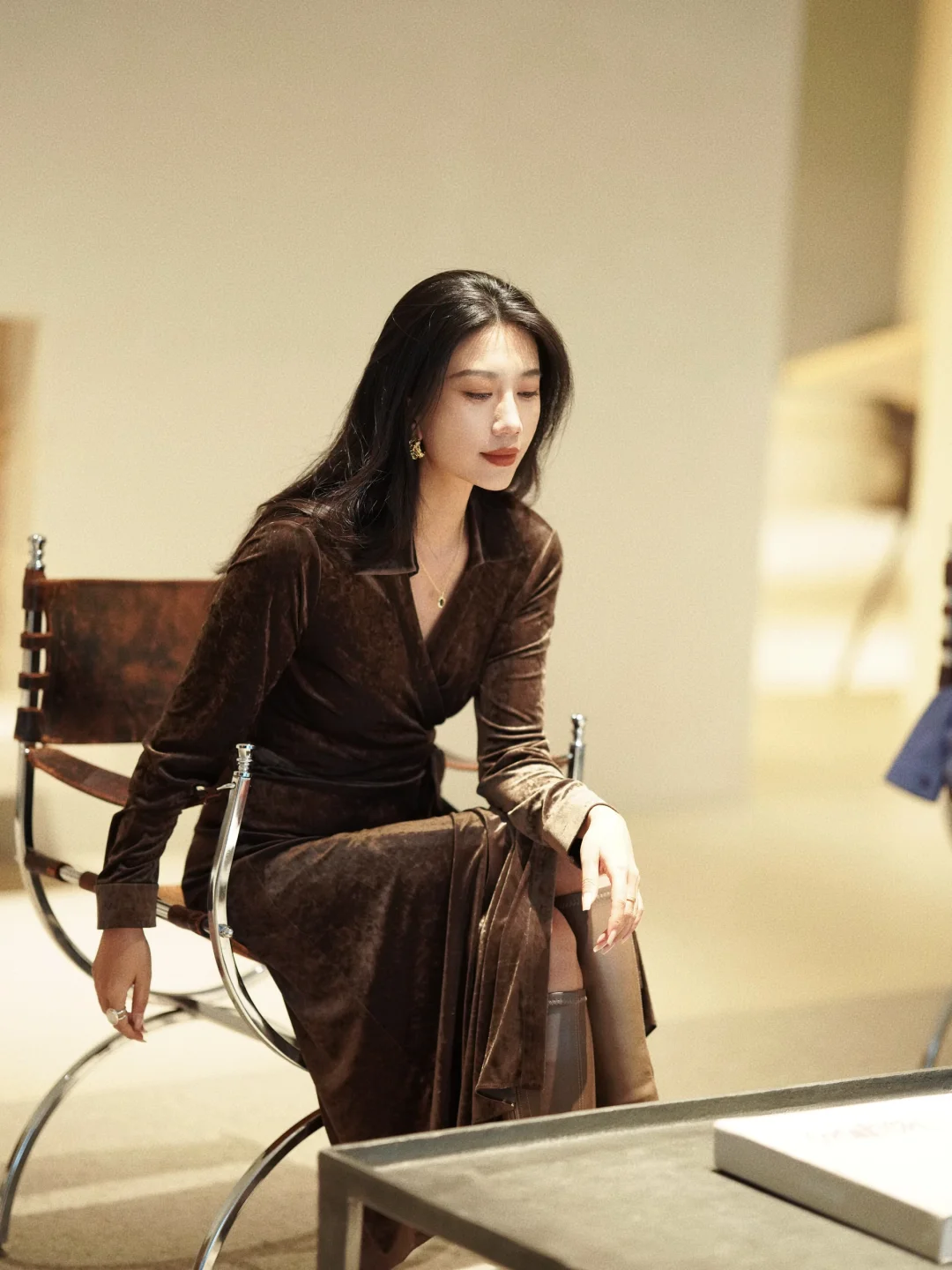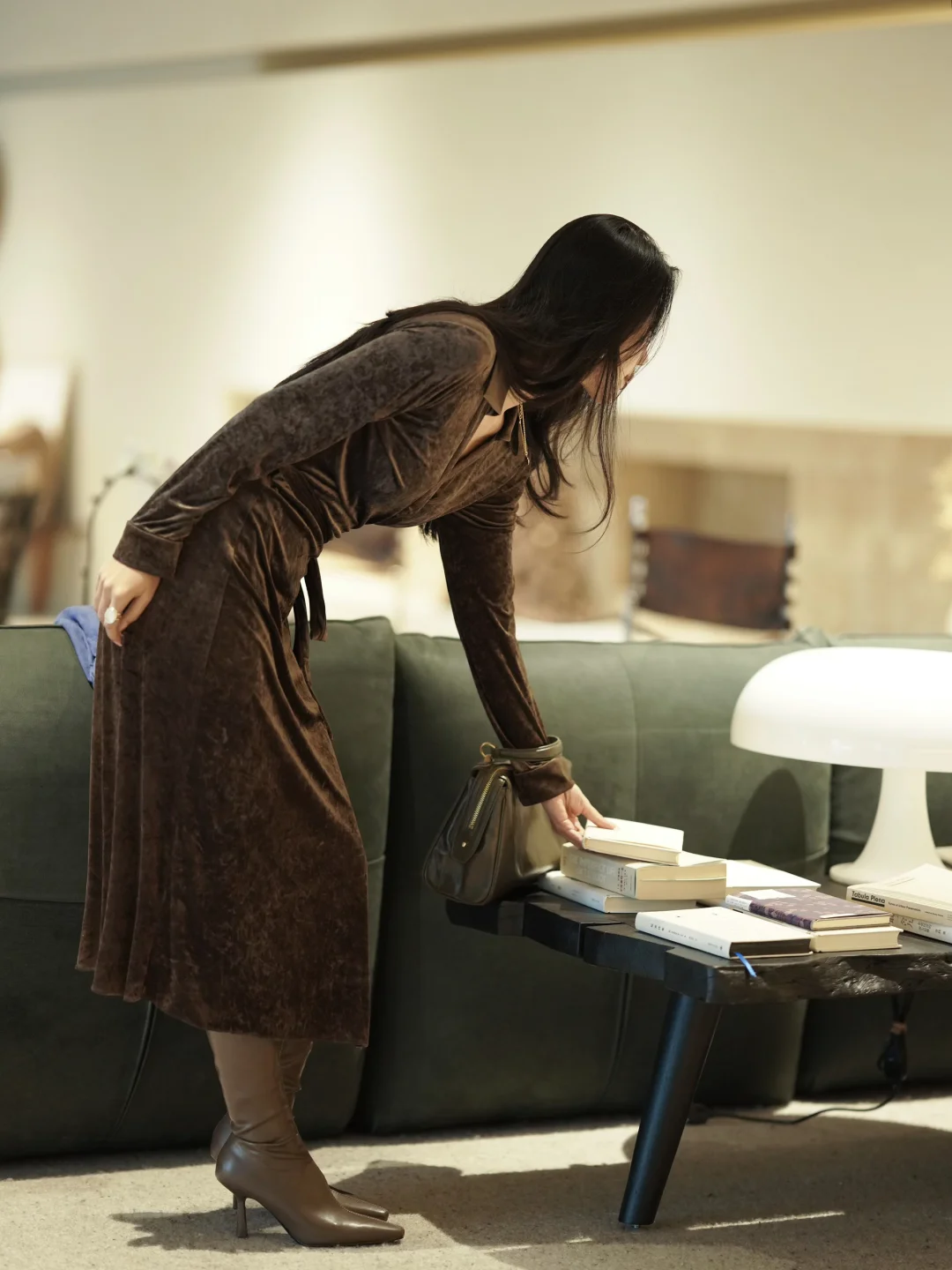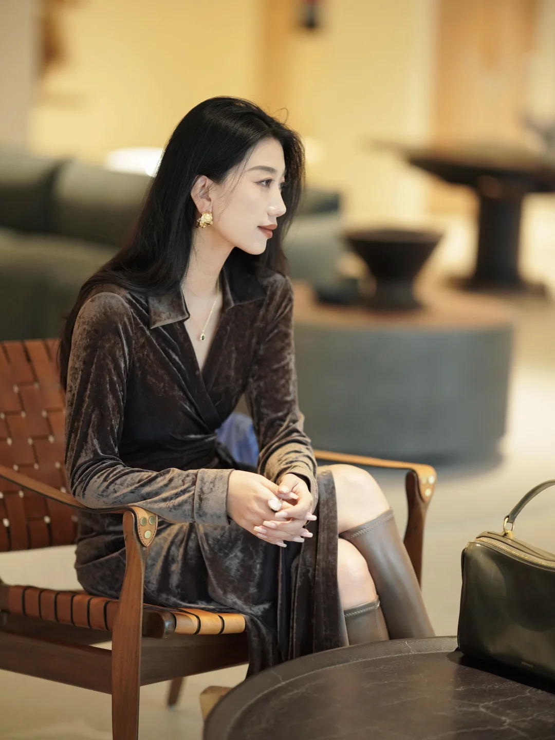 午后,丝绒裹身裙垂坠出日落深色调,穿过写字楼旋转门时,皮衣恰好接住中央空调的冷意。这身装扮本身便是深思熟虑的结果——当柔软向刚毅发出邀请,面料的对谈就开始了。