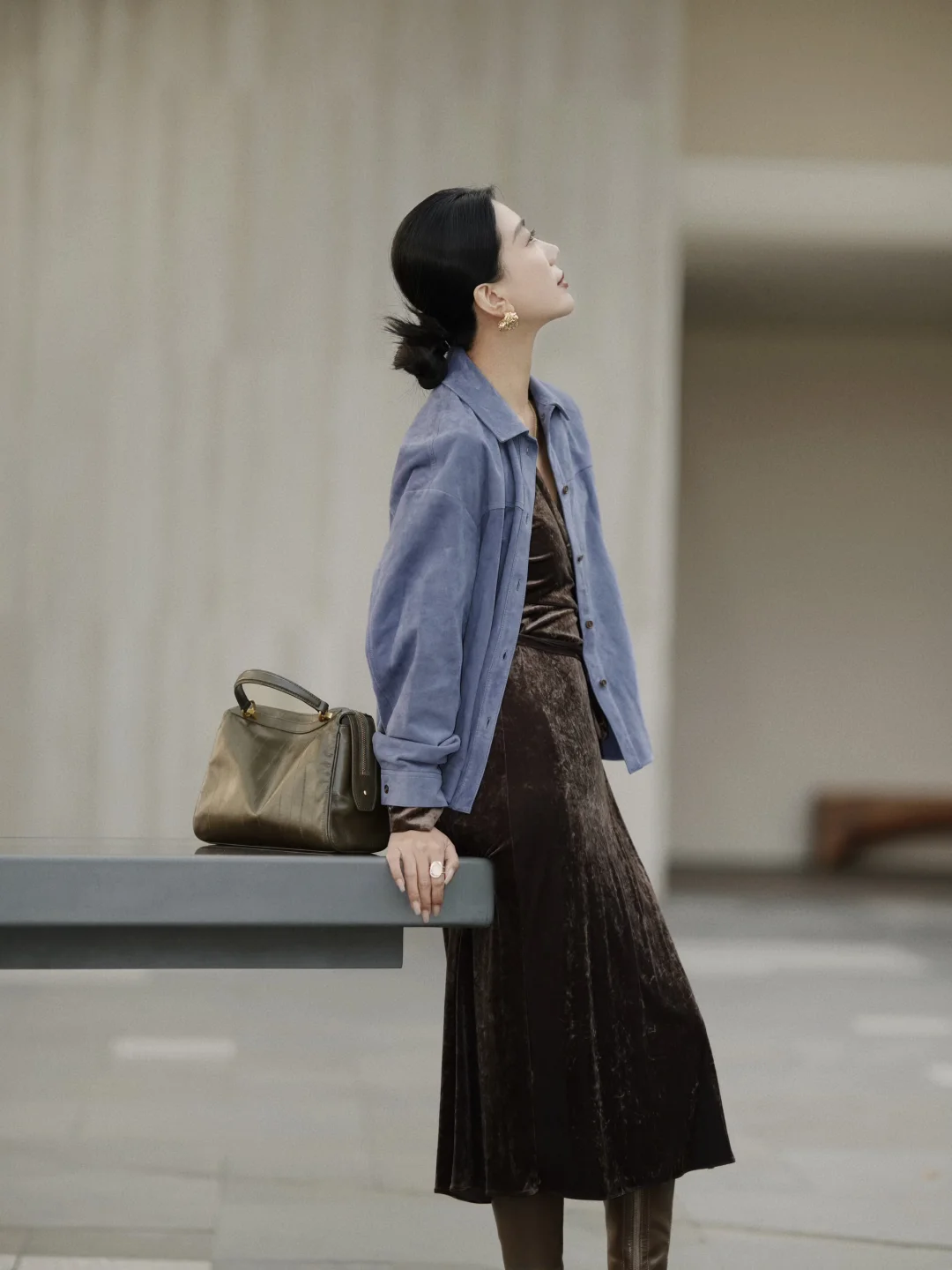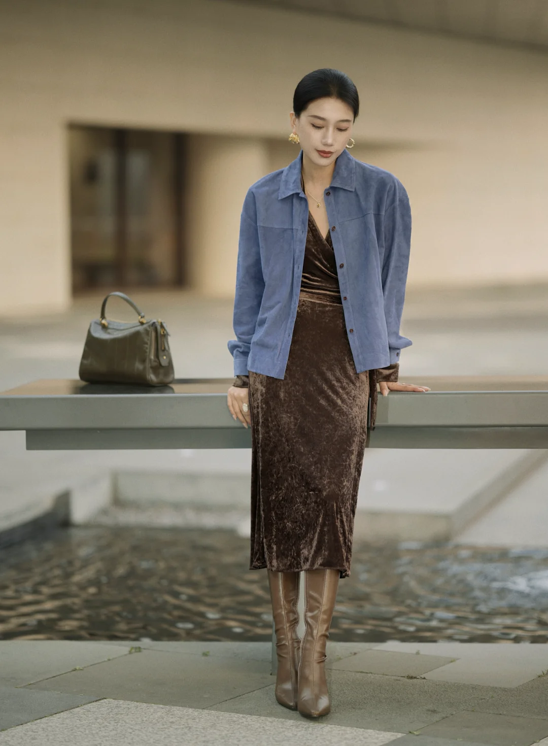 最自在的穿行,不过是让两种质地在自己身上和解——当丝绒的软遇到皮质的韧,便有了游走于任何场景的底气。