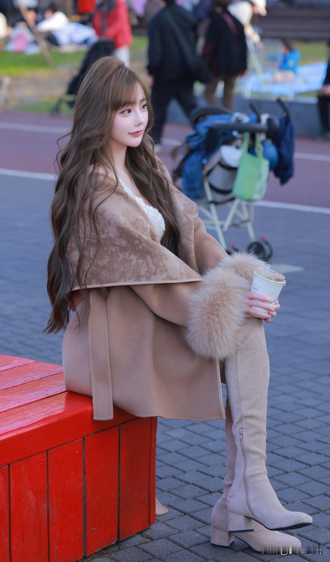 圣诞氛围满满,甜美少女与节日灯饰的完美结合!🎄✨