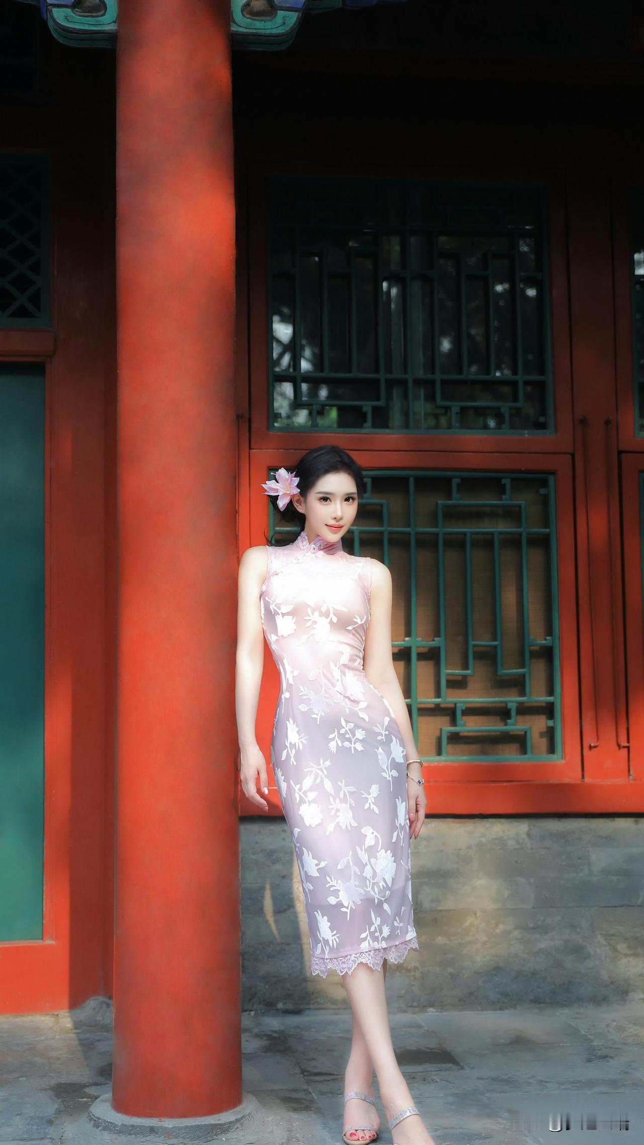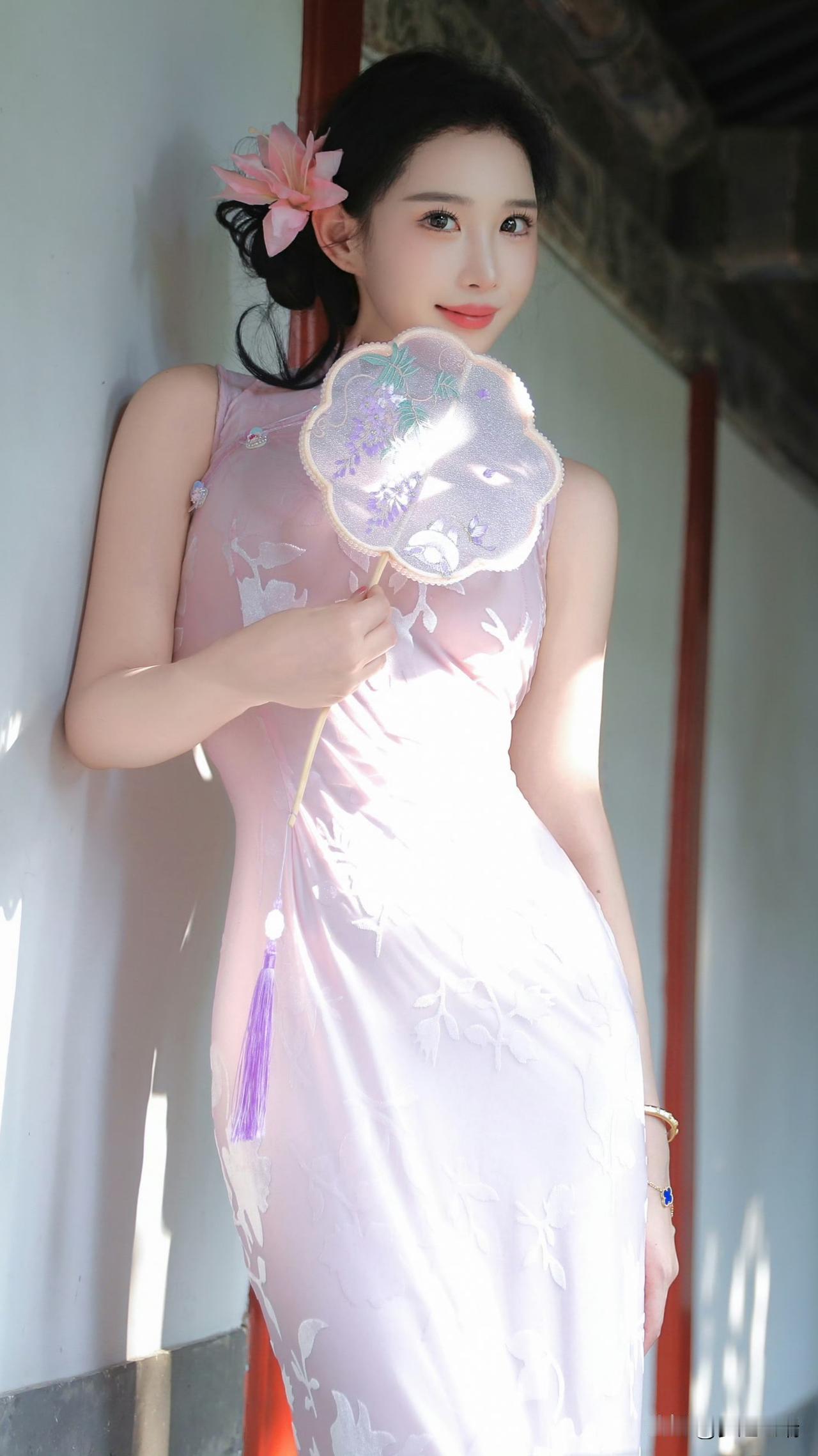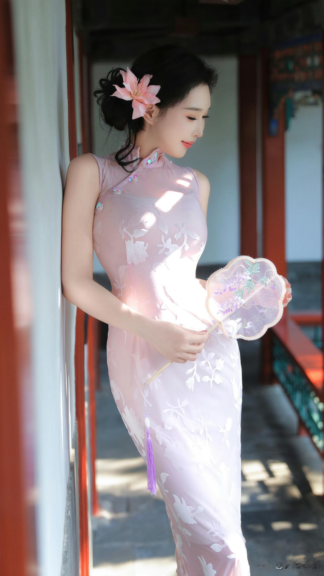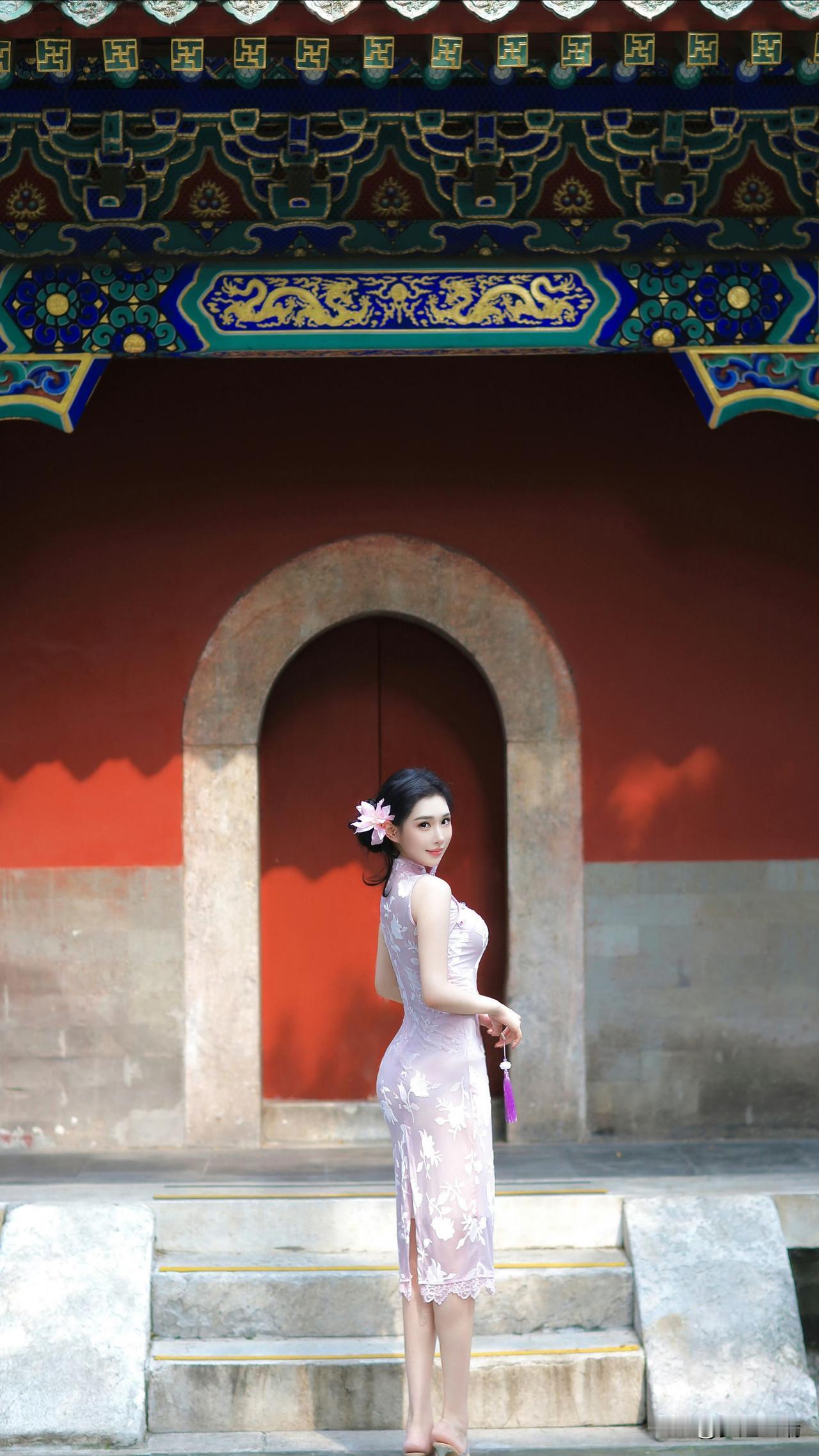 粉嫩旗袍美女,古典间漫步,优雅动人。