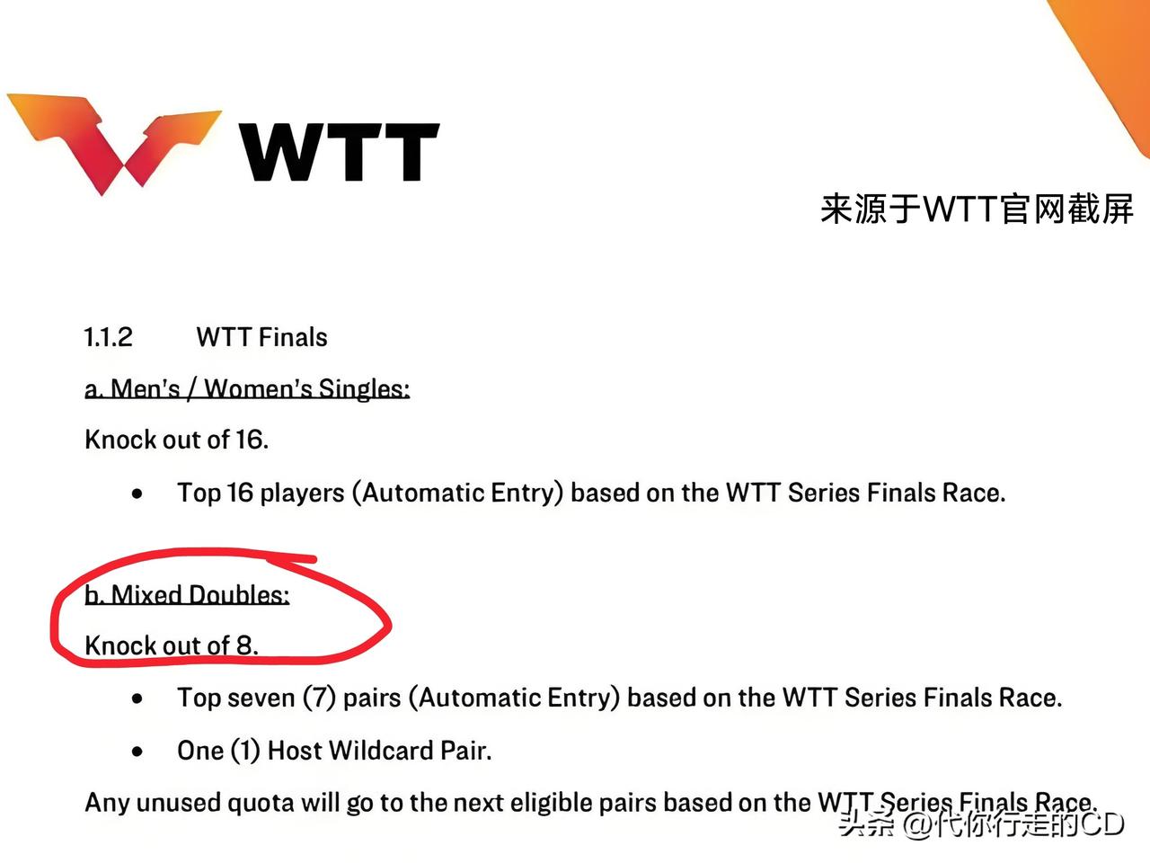亡羊补牢!总决赛一周后,世乒联急忙修改比赛规则。 "莎头"受伤的代价逼出来的! 昨日,世乒联(WTT)公布了2026赛季赛事手册,其中最引人瞩目的是:年终总决赛的赛期由5天变为6天;混双项目赛制改为单败淘汰制...增加赛期、简化赛程,从而达到缓解日益增长的比赛强度。 2025年WTT总决赛于12月10日-14日在香港举行,赛事期间,中国队动员孙颖莎、王楚钦因身体不适在单打项目上双双退赛。