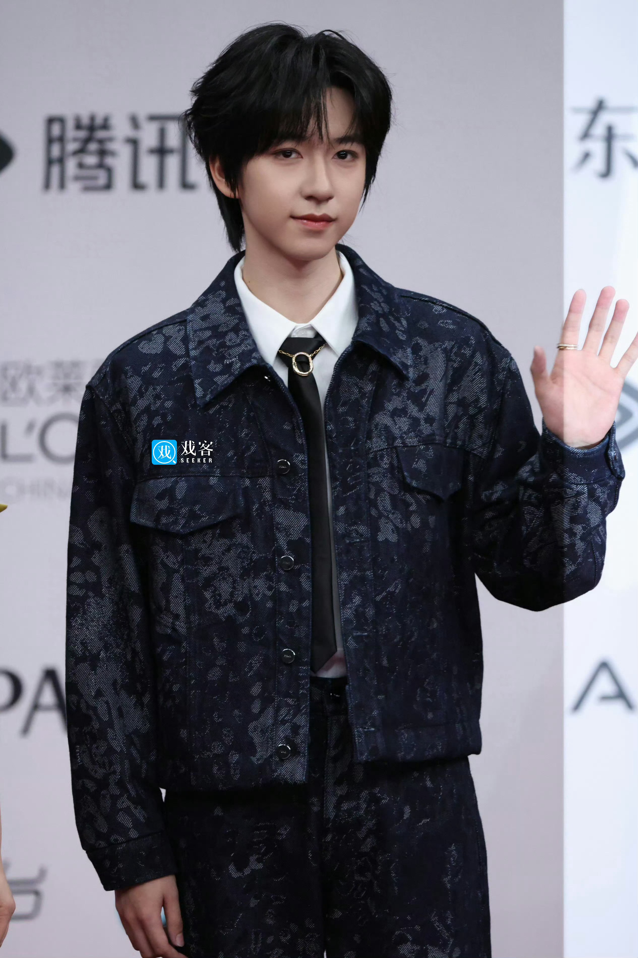 贺峻霖|腾讯视频星光大赏 贺峻霖以主持人身份亮相腾讯视频星光大赏红毯,身穿FENDI 2026早春系列蓝色提花牛仔套装,搭配Tiffany & Co. 珠宝,双奢加持尽显俊逸优雅,以从容之姿自信登场,诠释着新生代主持人的沉稳与灵动~✨ 星光大赏红毯 星光大赏出图 贺峻霖 主持首秀