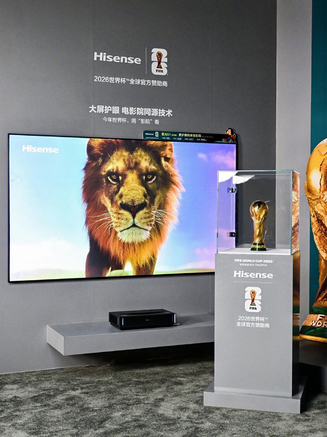 阿根廷队依依不舍归还大力神杯后,谁能想到它的第一站竟然是青岛……海信这波还是心里有咱们球迷!把大力神杯带来国内免费公开展出,现场还带大伙儿提前体验了一把世界杯定制产品带来的顶级看球体验,科技力拉满。116吋的海信RGB-Mini LED电视,可卷曲激光影院江山画卷R1,这是全球首款可卷曲的激光电视,屏幕升起来是世界杯现场,收起来是艺术品,黑科技看球这块儿,还得是海信!真球迷还是得提前换装备,为明年世界杯做好准备!今天谁在现场,给我也发发图看看!海信世界杯定制产品亮相
