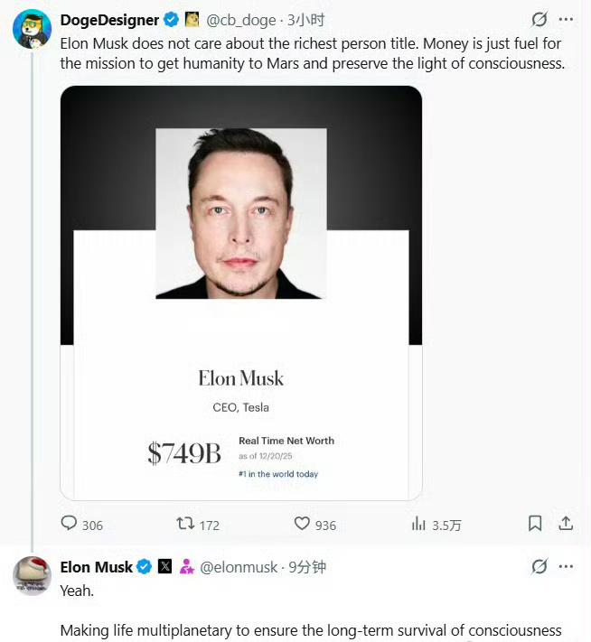 最近有个事挺引人注目的,世界首富的财富又窜了一截。短短几天,马斯克的身家暴涨了将近1500亿美元,达到了7490亿美元。这个数字被拿来和许多国家的GDP比较,引发了挺多讨论。 他财富暴增的关键,其实是两件事。第一是法律裁决。特拉华州最高法院最近推翻了之前的判决,恢复了他2018年在特斯拉的一份价值天价的股票期权。光是这一项,就给他的净资产增加了近700亿美元,占这次增长的大头。第二是SpaceX的估值。这家公司最近的私募估值翻了一倍,达到了8000亿美元。马斯克持有不少股份,这部分财富几乎和他特斯拉的资产持平了。所以马斯克的财富结构已经变了,SpaceX和特斯拉现在是他的两个主要财富支柱。 网上流传一个说法,说他的财富相当于187个国家GDP的总和。这其实是个概念混淆。GDP是一个国家一年内创造的所有产品和服务的价值,是流量;而财富是个人资产的估值,是存量。真要比较的话,其实只需要新加坡和瑞典两国明年的预测GDP加起来,就已经超过他的总财富了。另一个对比是,他比现在的全球第二大富豪多了近5000亿美元,这个差距本身就是一个超级富豪的全部身家。当然,不同机构的统计方法不同,比如彭博社的榜单因为估值模型更保守,显示的数字要低很多。 对于这笔巨额财富,大家的看法很不一样。马斯克自己说,财富是实现火星殖民梦想的“燃料”。他旗下的公司确实在电动车和航天领域有着巨大的影响力。但另一方面,批评的声音也很尖锐。比如有知名歌手就公开质问,为什么不用这些钱去解决世界饥饿问题。这反应了一种普遍情绪,就是技术进步带来的财富,似乎并没有让更广泛的人群受益。全球最富有的那1%的人,握有近一半的金融资产,贫富差距是个现实问题。 马斯克的财富未来看起来有几个可能的机会,比如SpaceX如果上市,或者特斯拉新的薪酬方案通过,都可能推动数字进一步上升。但他也面临着不小的风险。他的财富绝大部分是股票和期权,不是现金,市场一有风吹草动,价值就可能剧烈波动。事实上,今年他的身价就已经历过好几次几百亿甚至上千亿美元的起伏。此外,法律和政治环境的变化,也可能带来不确定性。