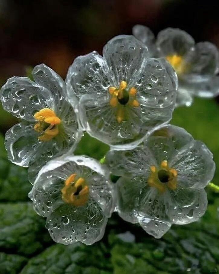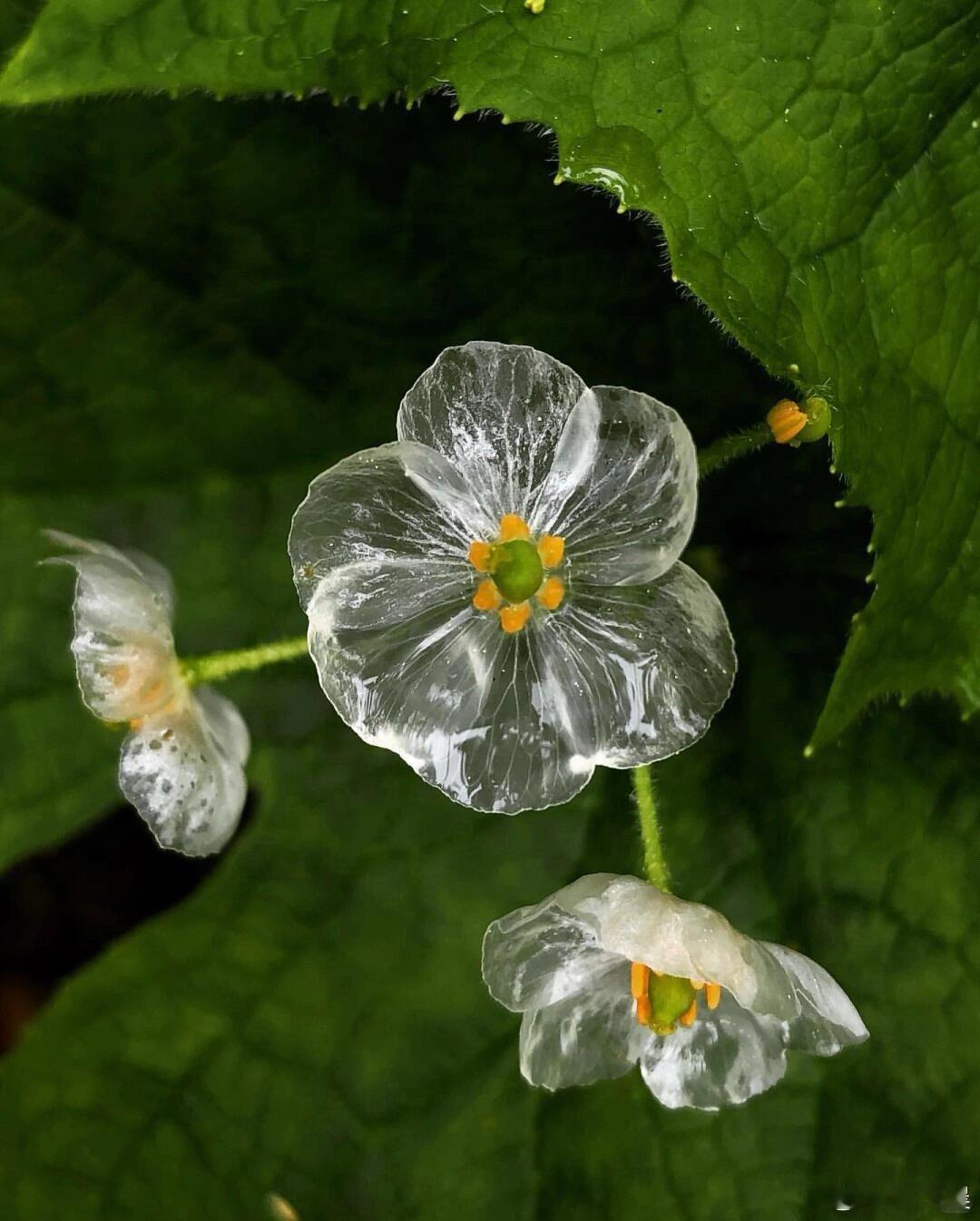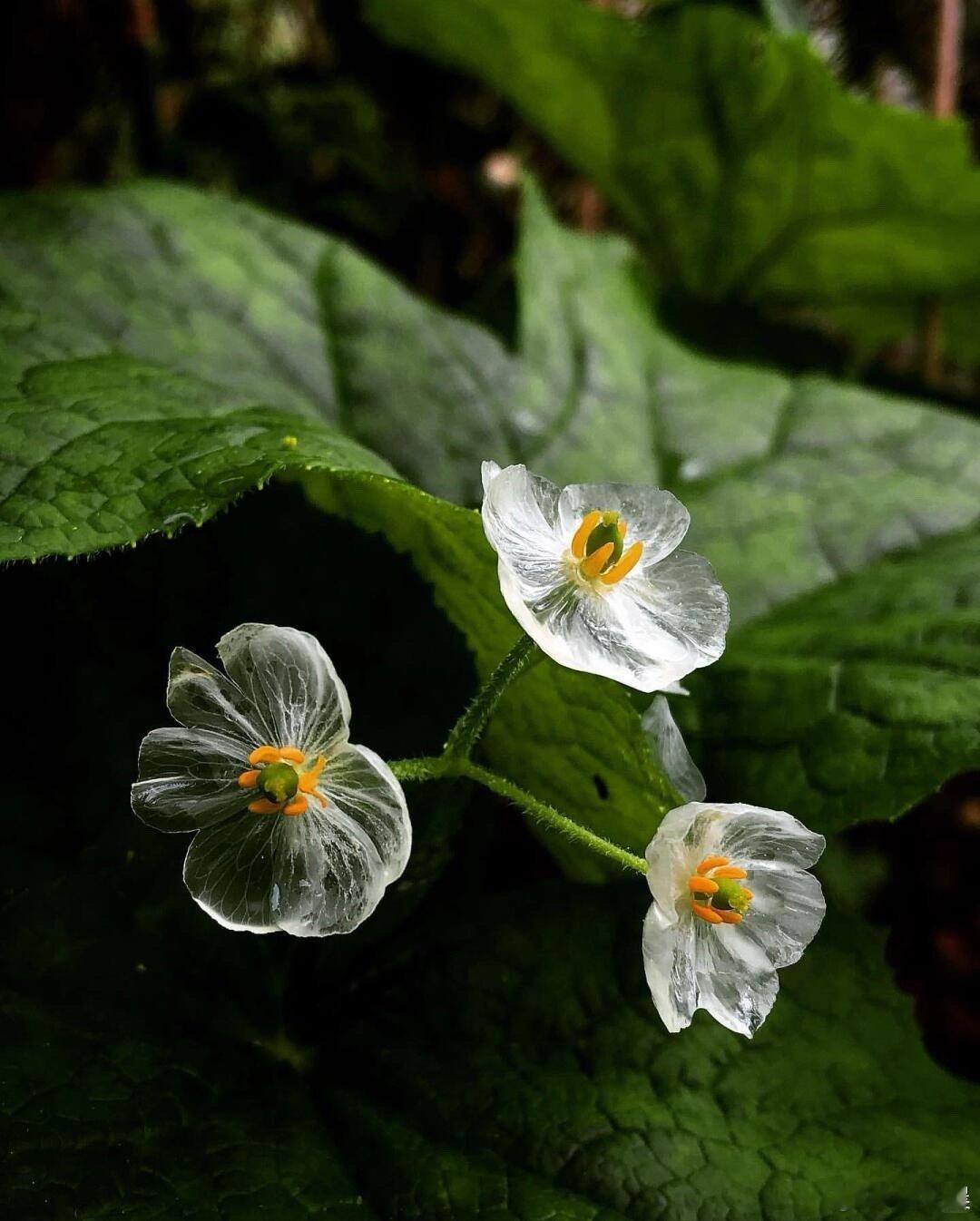 这种花遇水竟能变透明原来是空气让花变成白色千万别眨眼!这种花遇到水就会“变身”。白色的花瓣瞬间变得晶莹剔透,仿佛消失了一样。这是因为水取代了细胞间的空气,光线不再散射,太神奇了!