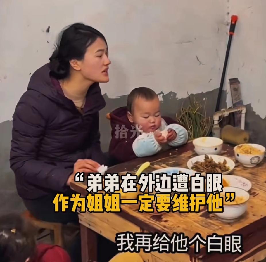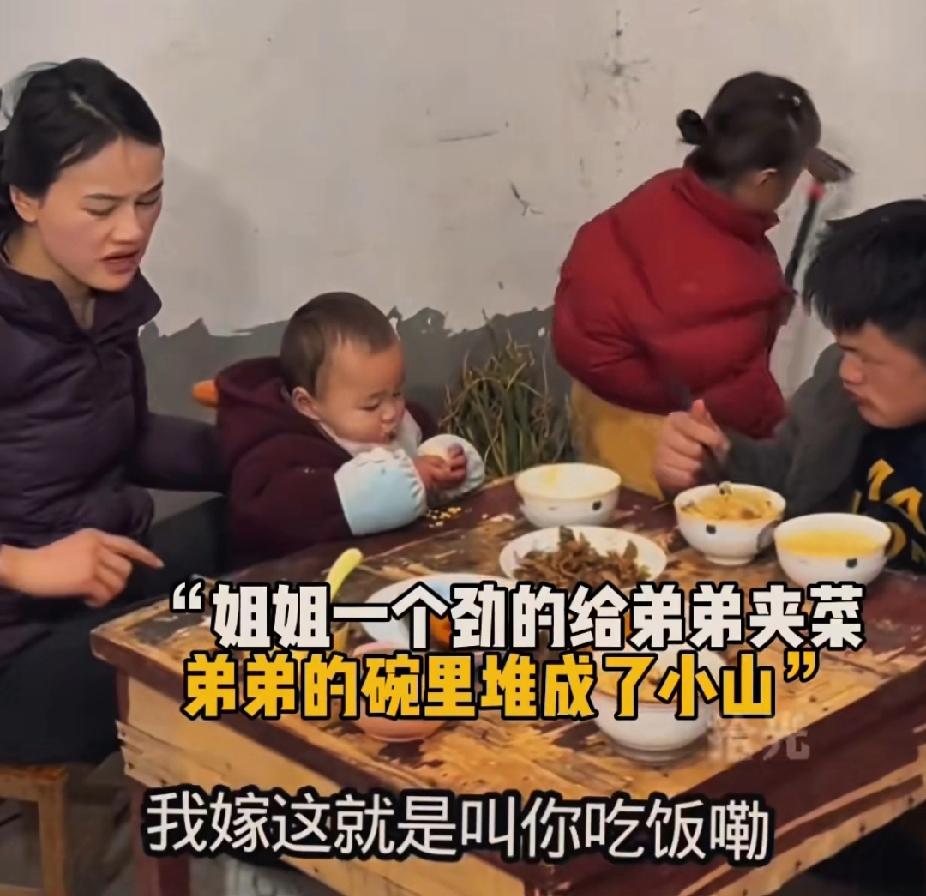 长姐如母!看哭了!傻弟弟一天“八趟”来姐姐家吃饭被姐夫嫌弃!姐姐:“当初嫁给你一分彩礼没要,就是为了让俺弟弟吃这口饭!” 这个傻弟弟有一个世界上最好的姐姐,这天姐姐和姐夫带着两个孩子正在吃饭的时候,傻弟弟突然怯怯地从窗户露出个脑袋。 姐夫见状冷冷地对妻子说:“恁那个傻弟弟又来了!” 姐姐抬头看到了在窗口不敢走进来的傻弟弟,赶紧招呼弟弟进来:“快点进来,快点进来吃饭!” 傻弟弟穿着破旧的棉袄棉裤,或许是是因为太饿,或许是因为太冷。傻弟弟走进来时,腿直打哆嗦,是半弯曲着的。外甥看傻舅舅来了,立马腾出地方给舅舅坐。 姐夫这时却在一旁说起了风凉话:“哎哟这饿得腿都站不直了,一天来八趟!”姐夫说着给了妻子和弟弟一个白眼。 傻弟弟用怯懦的眼神看了一眼姐夫,他心里似乎很明白自己被姐夫嫌弃了。 姐姐端来一个盛着蛋炒饭的盆子,不断地将饭扒拉到弟弟的碗里。听丈夫这么说,姐姐立马怼了回去:“这是他姐姐家,他想来几趟来几趟!” “俺俩一块长大的,在外面别人给他白眼,你也给他个白眼,你还让他活不活了?”姐姐一想到丈夫经常给弟弟白眼,就把一堆大道理甩给了丈夫。 或许在很多人看来,姐姐的做法就是妥妥的“扶弟魔”,但实际不是的。 姐姐当初相亲时就考虑照顾弟弟一辈子,所以不要一分钱彩礼,不要任何的东西,明确表明:“俺家里有个傻弟弟,以后少不了会到家里吃饭。”希望婚后可以一起真心对待自己的傻弟弟。 “那你当初也没说一天来八趟啊!”姐夫尝试性地埋怨着。 没想到现在丈夫竟然嫌弃弟弟来的次数太多,这令姐姐非常生气!她一边不停地给弟弟碗里夹着菜,一边说:“俺那个不傻的弟弟为啥不来你家啊?他出生就是这样,他也不图你啥,你家差这一碗米吗?你非要跟他计较吗?” 不知不觉,姐姐夹给弟弟的菜,在弟弟碗里堆成了一座小山。弟弟埋头吃着饭,听着姐姐这么维护自己,他不敢抬头看向姐姐或者姐夫的眼睛。或许他的心里也会难过吧! 姐姐越想越生气,当初说好给弟弟一口饭吃,丈夫却频频给弟弟白眼,如果自己不能给弟弟一口饭吃,弟弟又该何去何从呢? “吃,使劲吃,姐嫁到这里就是为了让你吃饭的!”姐姐一边说着,一边拼命地给弟弟夹菜。她知道,但凡有一次自己动摇了维护弟弟的想法,下一次弟弟可能就没法再来吃饭了。 长姐如母!简单的四个字包含了姐姐无数的心酸,血浓于水的亲情在任何时候都无法割舍!姐弟 亲情经历分享