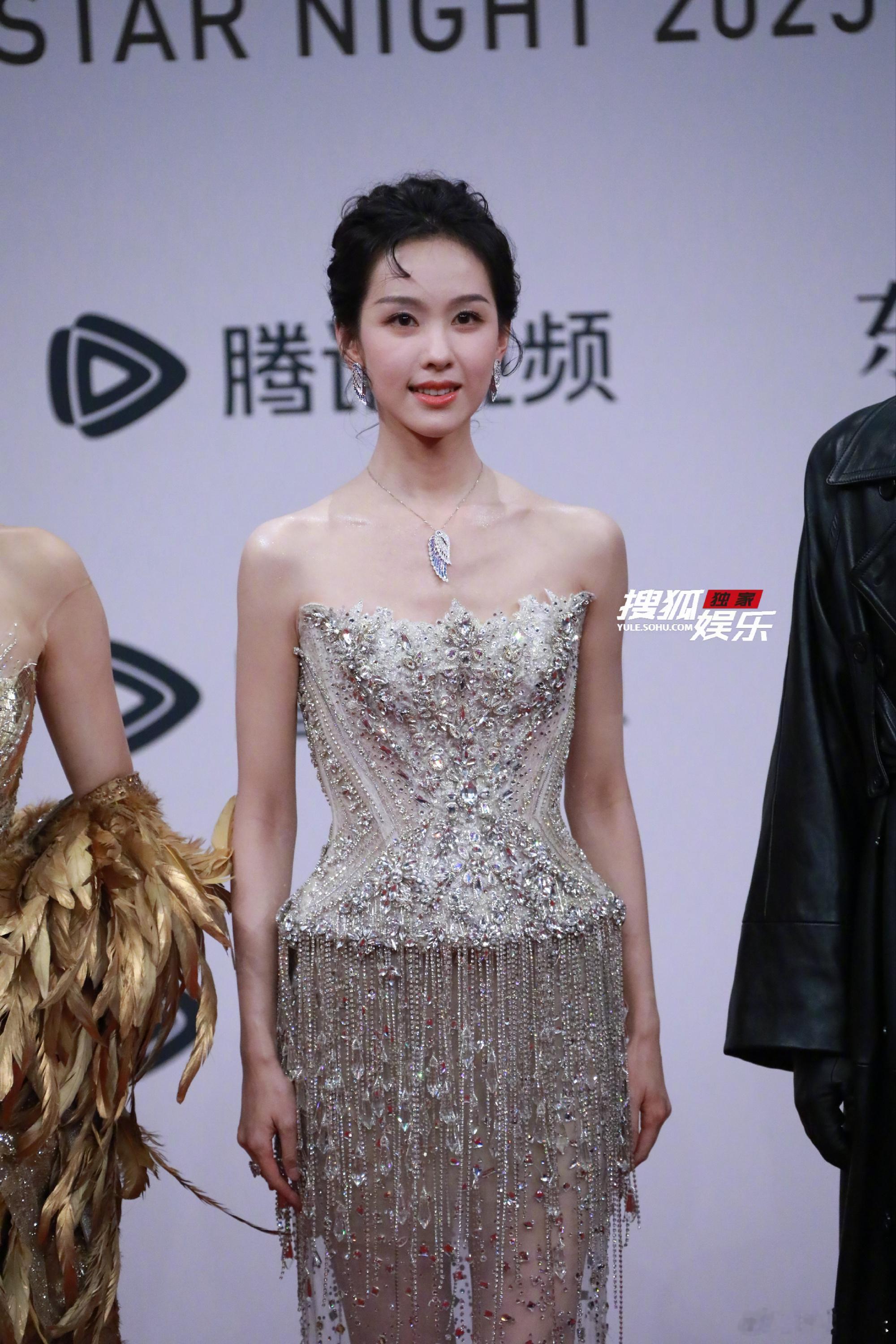 但凡张天爱身上有一点赘肉都穿不了这个衣服