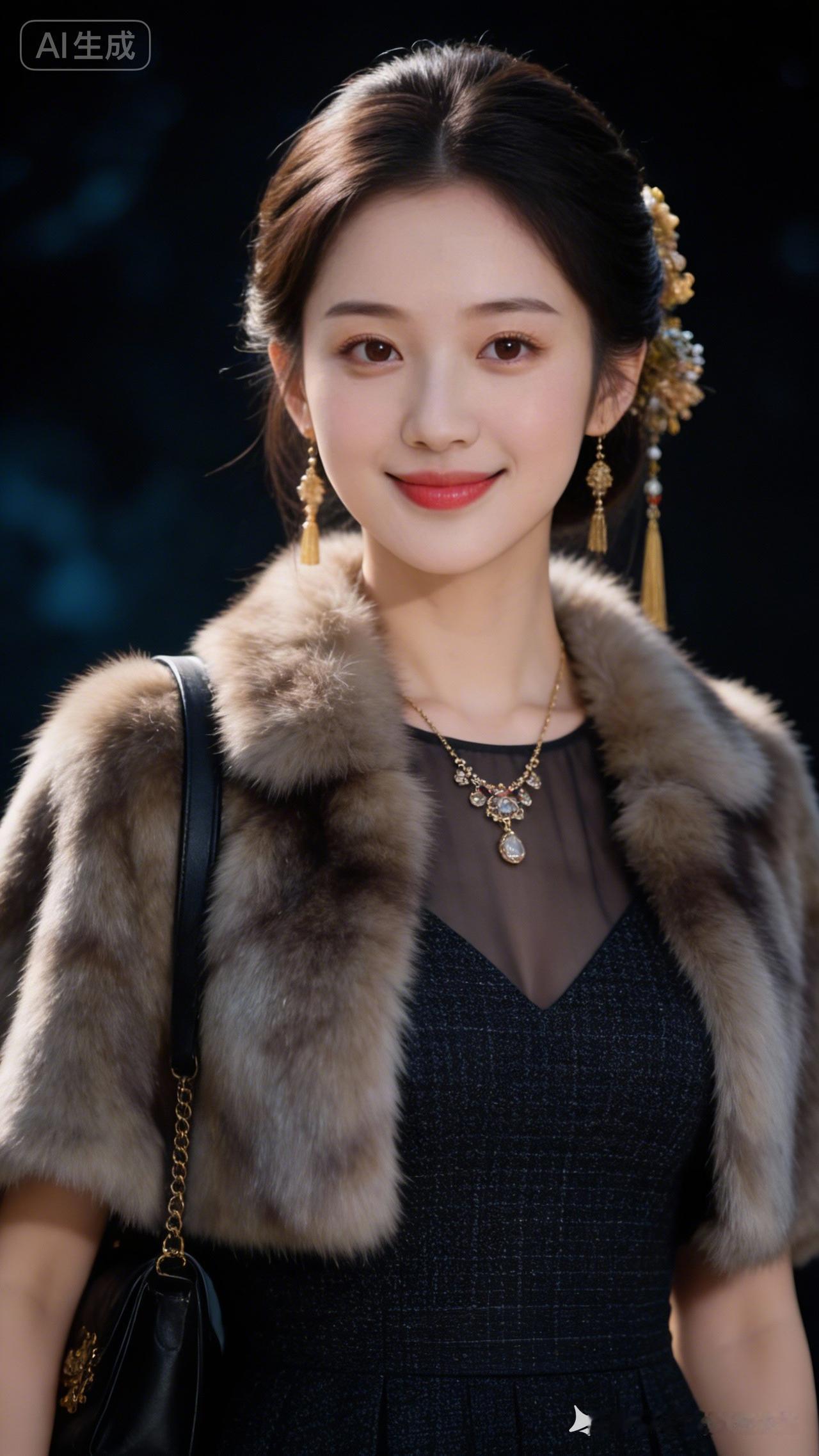 优雅复古风,毛绒外套搭配珍珠项链,尽显时尚魅力!💎👗👠