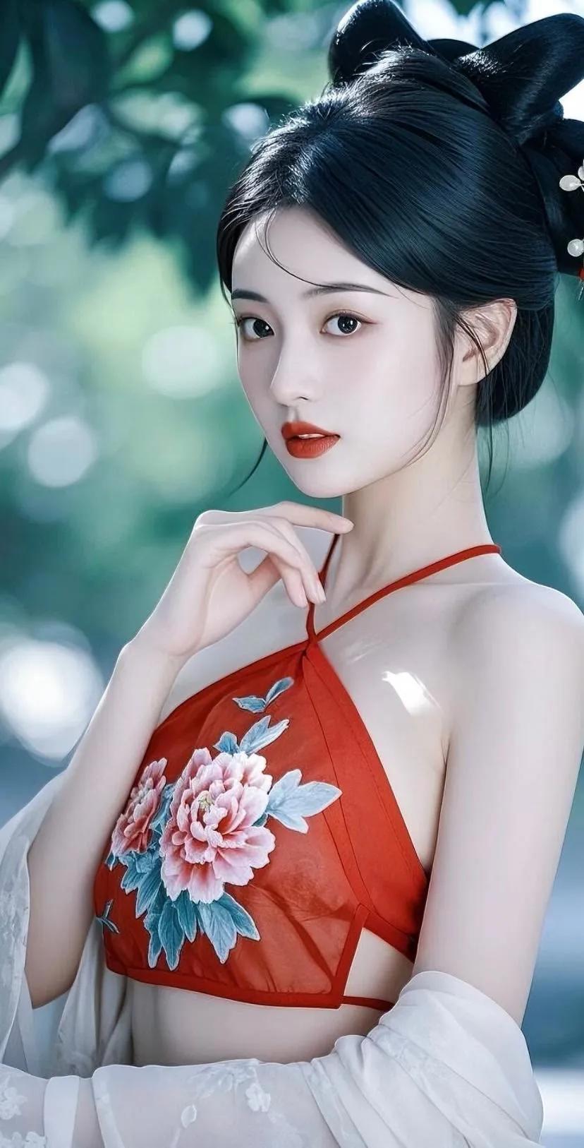 冬日暖阳下的甜美少女,红衣配珠链,尽显优雅与甜美。