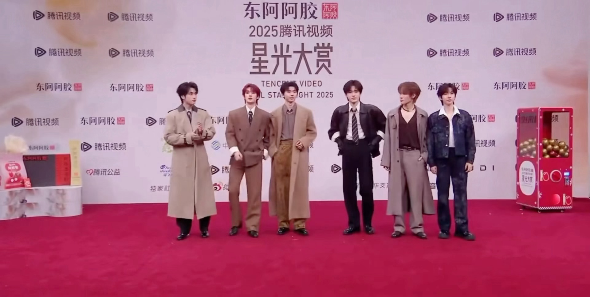 时代少年团 今日星光大赏红毯,利落大衣、硬朗夹克、廓型西装… 时髦的秋冬美拉德色系男装搭配Tiffany珠宝,硬帅的“男模”风范。 马嘉祺 / 丁程鑫 / 宋亚轩 / 张真源 / 严浩翔 / 贺峻霖