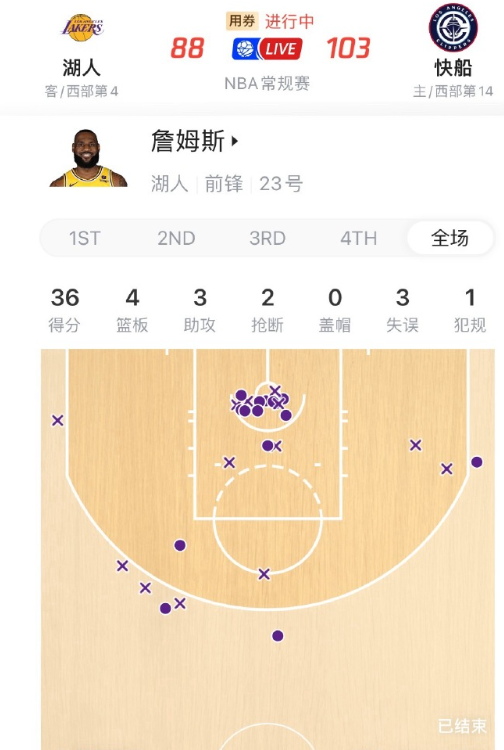 又要攻又要防,41 岁的詹姆斯出战38分钟,28投15中,三分7中3,得到36分4板3助攻2抢断。