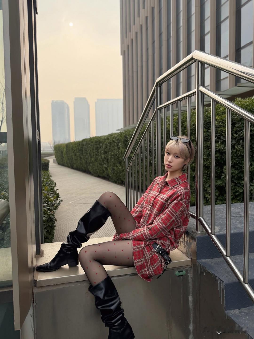 条友这一周都市少女风,红格子衬衫与黑色靴子的完美搭配,时尚又帅气!