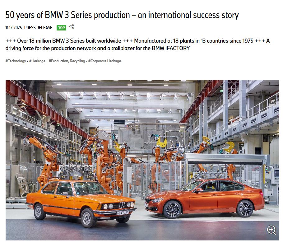 【宝马 3 系全球产量突破 1800 万辆,50 年传奇仍在继续】宝马集团宣布,宝马3系全球累计产量突破1800万辆,成为推动宝马生产技术迭代的核心驱动力。自1975年面世以来,该车型已在13个国家的18座工厂投产,并将在2026年推出纯电动版。 宝马3系 汽车工业