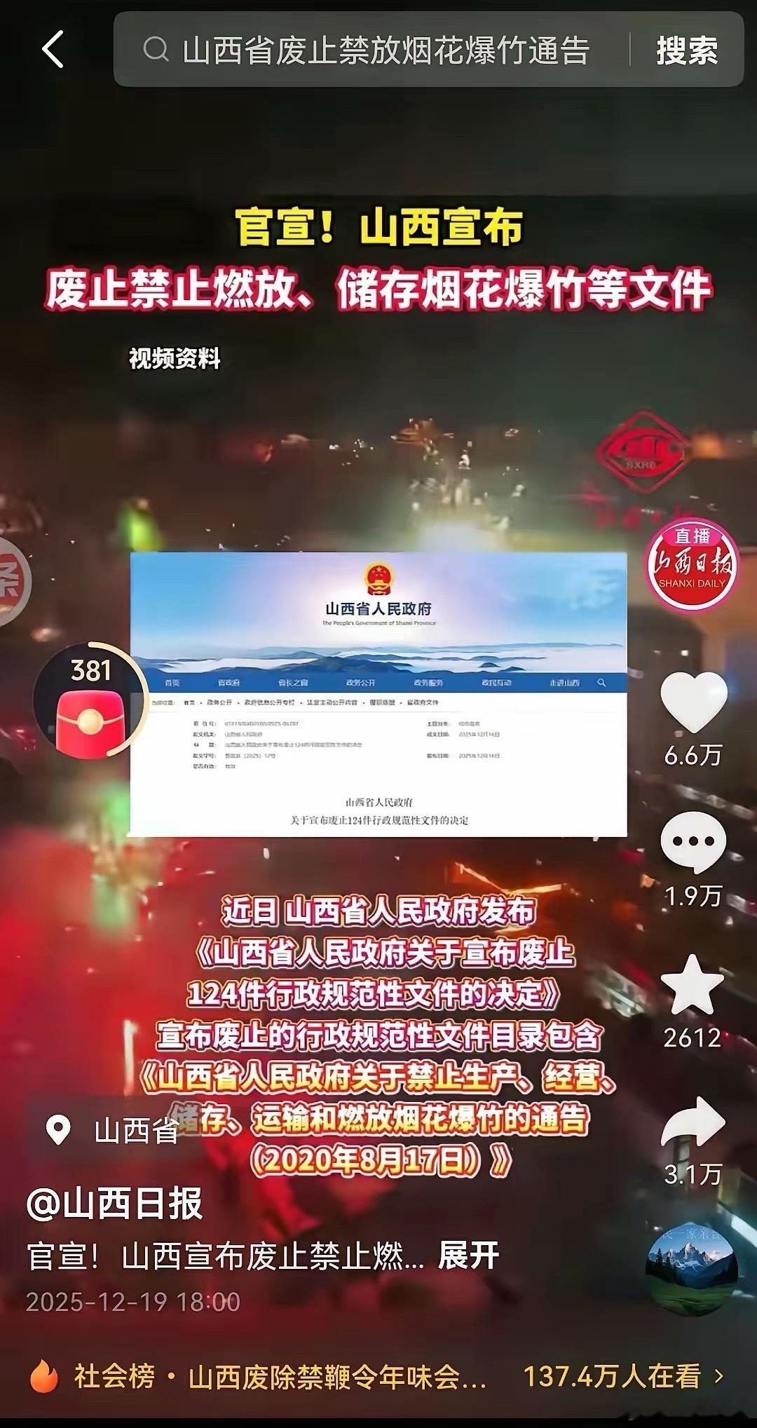 山西这次捅了马蜂窝了,敢冒天下之大不韪,竟然放开了过年期间的燃放烟花爆竹,这得是需要多大的胆量和魄力。网友们纷纷表示今年要去山西过年,毕竟山西有那么多的古城,古建筑,试想,在悠悠古城,大雪纷飞,身着古装汉服,迎着新年的气息,燃放着绝美烟花,是多么的应情应景,亲身感受穿越剧的浪漫。为山西点赞,今年的春节,我们相约山西!山西春节烟花山西过年放烟花山西烟花晚会山西放烟花山西燃放鞭炮山西燃放山西烟花秀
