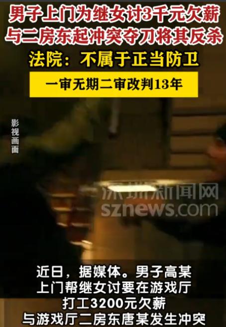 河南鹤壁,一女孩在游戏厅打工1个多月,被拖欠了3200元的工资。女孩向继父哭诉后,继父气得到游戏厅找老板讨说法,期间二人发生肢体冲突。男子先用麦克风支架砸伤了老板的头部,随后老板持刀挥刺反击,在二人争斗期间,继父抢过老板的刀捅向老板致其死亡。一审法院认定男子构成故意伤害罪,判无期。男子不服,认为自己是正当防卫为,于是提起上诉。 屋里的女孩瑶瑶坐在床沿,手里攥着一张皱巴巴的工资单,嘴唇一直在微微颤抖。 “这一个多月,我到底都干了什么……”她轻声呢喃,将那上面挂着的三个数字狠狠揉碎在手心。 3200元,是游戏厅拖欠她的工资,是她每天从早到晚揣着疲惫打工的回报,却如同空洞的承诺一般,迟迟未能兑现。 夜幕深了,瑶瑶哭着拨通了继父高某的电话:“爸……他们不肯给我工资,我真的撑不下去了。” 听筒那端传来一声长叹,又夹杂着疲惫和愤怒:“别急,等我一会儿,我去找他们理论。” 挂断电话后不久,高某就驱着破旧的面包车,沿着夜色中的街道向二人约好的地方——那家灯火仍旧亮着的游戏厅驶去。 …… 夜市的霓虹在风中摇摆,游戏厅门口的招牌刺眼而耀眼,电子竞技音乐从里面传出,混合着偶尔从街上传来的摩托声,躁动而喧嚣。 高某站在门口,眼神如同深夜里被浓烟熏红的火焰般攒动。他的手攥成拳,指节因为用力过度而呈现白色。 “老板在吗?你是不是欠薪?”高某大声吼道,声音盖过了门内嘈杂的音乐。 几个正在玩街机的年轻人抬头看了他一眼,又继续投币。 门内传来一个中年男人的声音:“怎么了?又来讨工资?” 高某气已经上来:“你欠我女儿的工资还没给,是不是不想给?” 那男人抬头,眼里带着不耐烦:“工资?我们忙成这样,你以为我们没开销?要钱去找她爸妈讨去!” 高某的脸色顿时阴沉下来。他转身朝前台的桌子走去,伸手抓起一个用来调节音响的 麦克风支架。他咬着牙,把支架举到了老板面前。 “你再这么说!”他咆哮着,一下砸向中年男人的头部。 “嘭!”一声闷响,麦克风支架落下,击中了老板的颅侧。老板倒退一步,鲜血顺着额头流了下来。 摊开手在额头上拍了几下后,老板怒从心起,抽身从柜台下摸出一把菜刀。刀柄握在手里,刀锋在昏黄灯光下闪着冷冷的寒光。 “你找死!”老板咆哮着冲了上来。 高某见状,心脏“咚咚”直跳,脑子里一片混乱。他试图举起支架挡住,却被老板逼得踉跄后退。厨房门被风吹得砰地一声关上,回声在狭小的空间里回荡。 “放开我!你敢动我女儿试试!”高某怒吼。 老板一步步逼近,挥刀朝高某刺来。高某惊恐中侧身躲闪,却被划破了手臂。热血顺着袖口往下淌。 “住手!你别过来!”高某踉跄着往后退,却被迫退到了墙角。 眼看眼前这一切失控,他心里那根最后的理智也断了。 在电光火石之间,他眼睛一闭,猛地伸手抢过老板手里的刀——“啪啪啪——!” 几声急促的刺击在狭小空间里回响。 等一切停下来的时候,老板倒在了地上,胸前的油渍地毯上一片深红。 高某跪在地上,茫然地看着那把掉落在脚边的刀,手还在微微颤抖瑶瑶被吓得不知所措,瑟缩在门口哭得泣不成声。 警察到来时,游戏厅的门口已经被黄线圈住。高某被铐在冰冷的铁椅上,身上还留着未干的血迹。他的眼神空洞,仿佛这一切都不是发生在自己身上。 “你清楚自己干了什么?”警察问。 高某仿佛才回过神来,他喃喃道:“我……我是为了我女儿……我只是想讨回她的工资。” 在一审中,法院认定高某的行为构成 故意伤害罪,并判处无期徒刑。宣判那天,高某的眼里没有怒火,只有彻底的绝望与茫然。 但他不认罪。他的辩护律师向法院提出,上诉理由是 正当防卫——高某并非主动寻衅滋事,而是在自认被攻击威胁下,为了保护自己才做出反击。 二审的法庭上,律师反复强调:当时双方在狭小空间内对峙,老板手持利刃逼近高某,并已有伤害高某的行为,高某在被逼至绝路的情况下,才夺刀反击。 二审法院经过审理认为,一审判决对高某的罪责定性过重,未充分认定现场对高某构成的现实危险性。 最终,二审裁定撤销一审原判,改判 有期徒刑13年,剥夺政治权利5年。