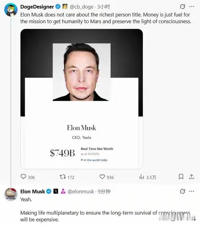 马斯克离开白宫之后就有点“神叨叨”的,天天想着“意识永存” 马斯克离开白宫之后就开始苦心钻研人类在星际繁衍的可能性和人类“意识永存”的技术,这已经超脱科技领域进入了科幻范畴。 但是以目前的技术水平想要实现马斯克得星际繁衍和“意识永存”都非常困难。