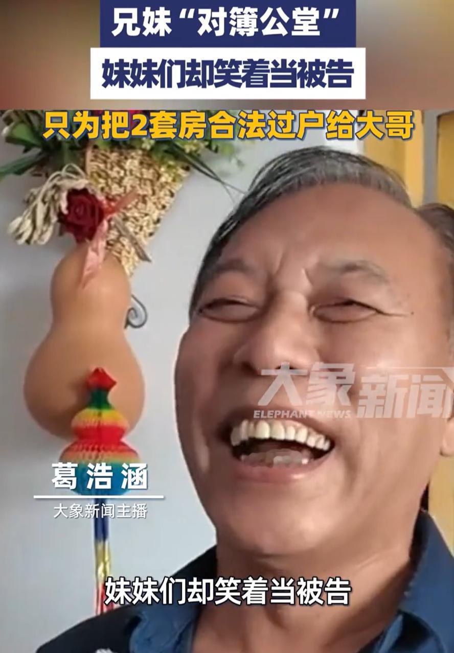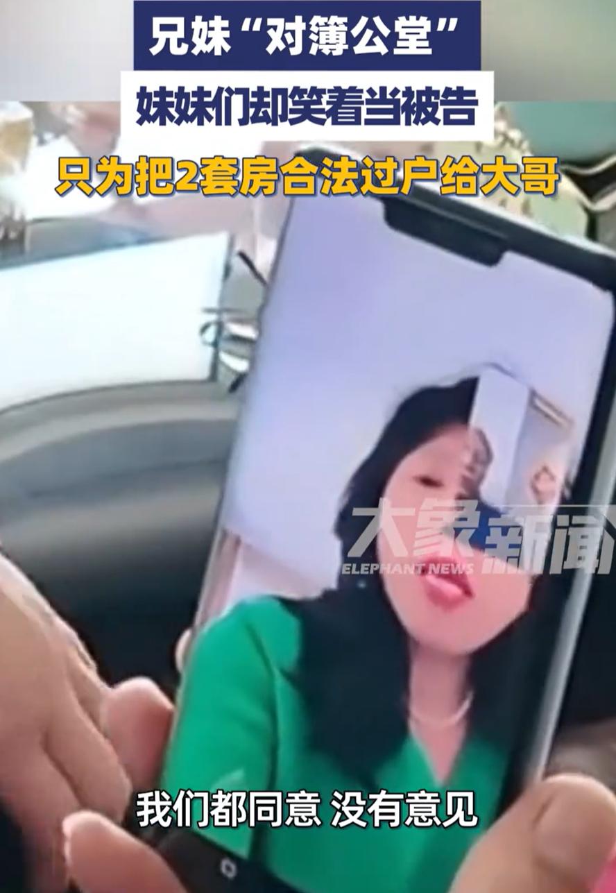 这样的亲情羡慕了多少人?黑龙江双鸭山,老父亲故去,哥哥为继承父母的两套房子,将四个同胞妹妹告上法院。不过最让人意外的是,兄弟姐妹们并没有因为财产而反目成仇,妹妹更是笑着当被告,只为把房子尽快过户给大哥! 仇先生家里五个孩子,一个大哥仇先生,四个女儿。老人一辈子辛苦,按理说,遗产该是五个人平分,接下来大概率就是算账、拉扯、翻旧账,甚至亲情当场清零。可这家人,偏偏走了条完全相反的路 告,不是为了争,而是为了给。妹妹们心甘情愿当被告,一个个在视频那头笑呵呵的,就为了让大哥能顺顺当当地把两套房子都继承过去。为啥?因为大哥付出得多 原来,四个妹妹都远嫁外地,平常日子里,是大哥一个人扛起了照顾老父亲、伺候老母亲的责任。老母亲身体不好,主意也拿得定:这房子,就得给儿子。妹妹们心里跟明镜似的,她们说,大哥这些年受的累、吃的苦,她们都看在眼里,记在心里。房子给他,天经地义,她们心里踏实,也乐意 本来走公证更简单,但这需要五个子女加母亲必须全部到场。有两个妹妹在外地,来回折腾一圈,时间精力成本都不小。全家一合计,干脆走诉讼程序。哥哥起诉,妹妹们当被告,目的只有一个,把事办完,把房子顺利过户 就这样,一家人通过线上视频表决意见,两个妹妹笑着通过视频表态说没有意见 不过这个事到这还没完,仇先生考虑到一个外甥还没有结婚,他主动拿出一套房留给了外甥,让他做结婚的新房 说实话,看完这个事情,我心里挺有感触的。因为它打破了我们对于“争家产”的很多刻板想象。有时候,法律程序不一定是亲人反目的工具,也可以成为实现家庭共同心愿的桥梁。这家人的通透在于,他们早早算清了一笔比金钱更重要的账,亲情账、付出账 这件事里有个很关键的“公平感”。不是绝对的平均才叫公平,而是每个人的付出都被看见,每个人的心意都被尊重。妹妹们觉得大哥辛苦,该得;大哥感念妹妹们理解,心安。这种“公平感”建立在充分的沟通和深厚的信任之上,是家风,也是智慧 对此,大家有什么看法?