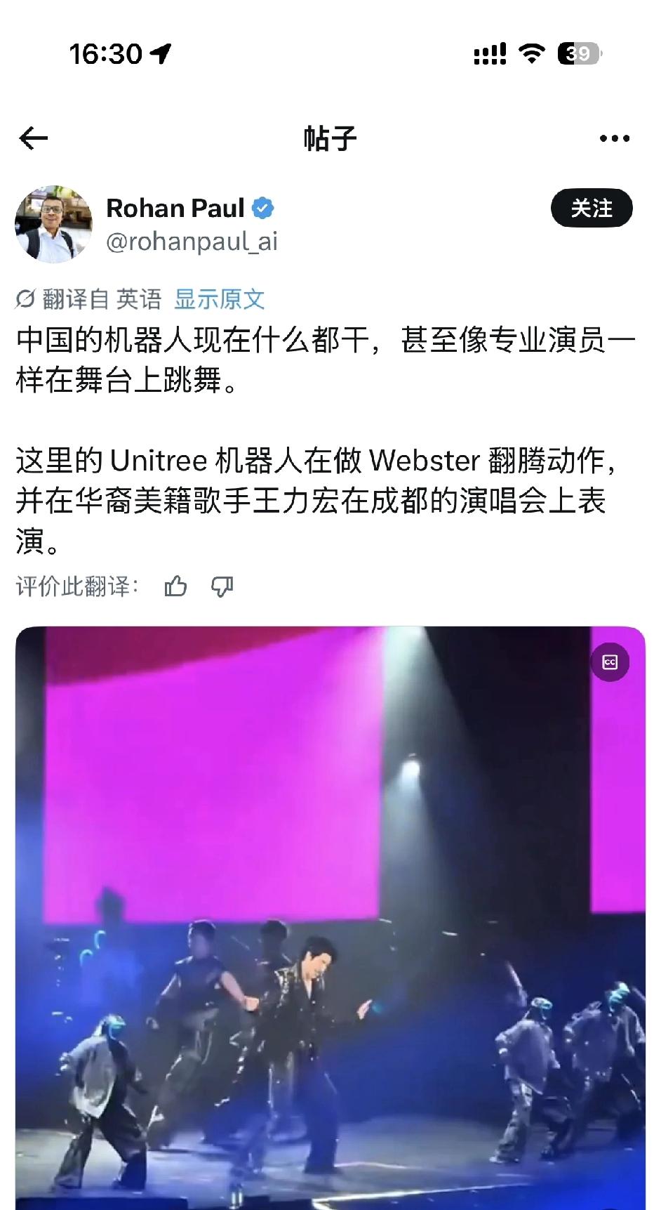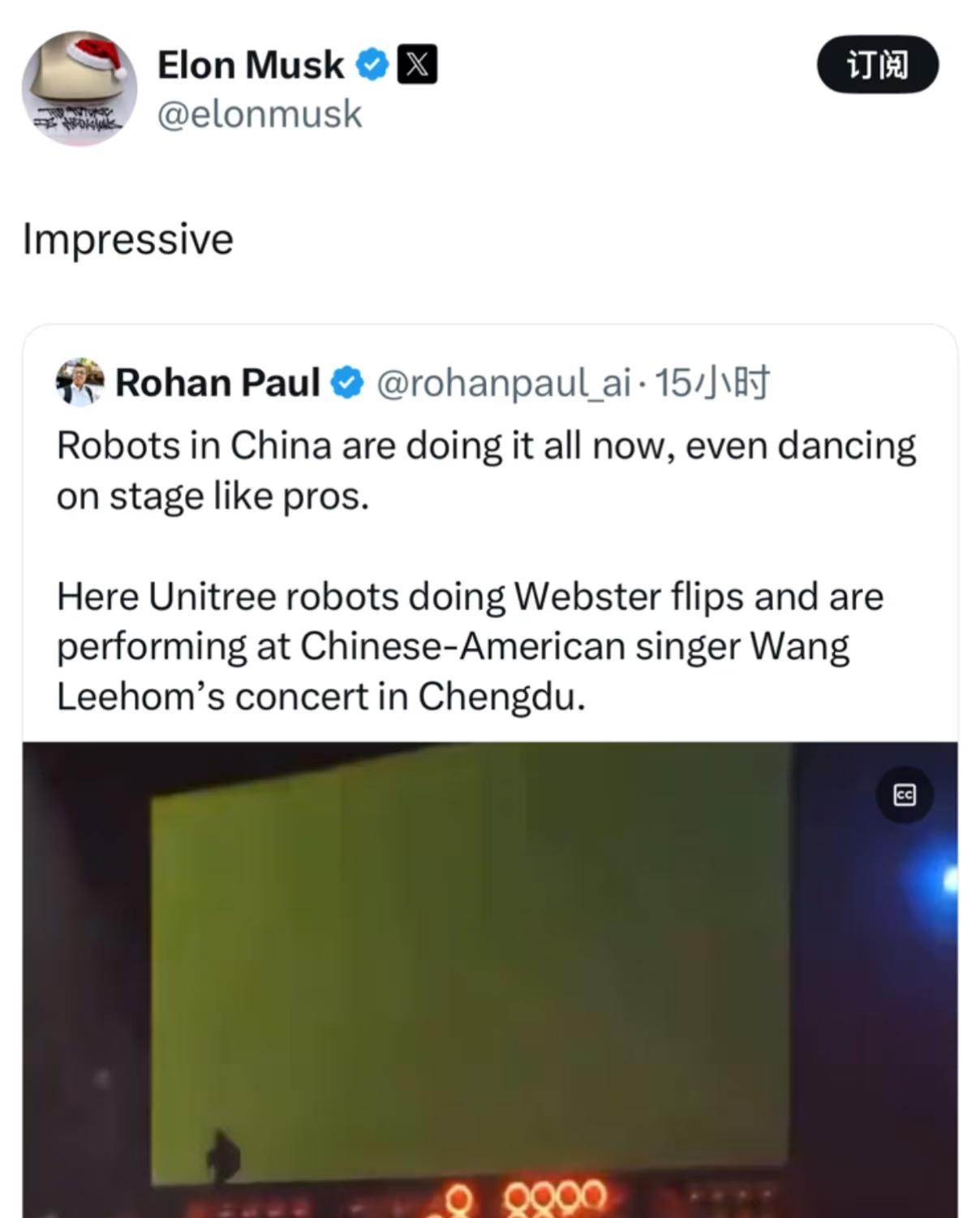 宇树机器人又火了一把。 最近有一段王力宏的视频,伴舞的宇树机器人不仅舞跳的好,还能翻跟头。 于是有网友发文感叹:中国的机器人现在什么都能干。 世界首富马斯克看到以后,点赞转发了这段评论,也点爆了这段评论。 不得不感叹,中国的机器人越来越好了。 不过也有网友点踩:费劲吧啦的,就弄个个机器人来跳舞。