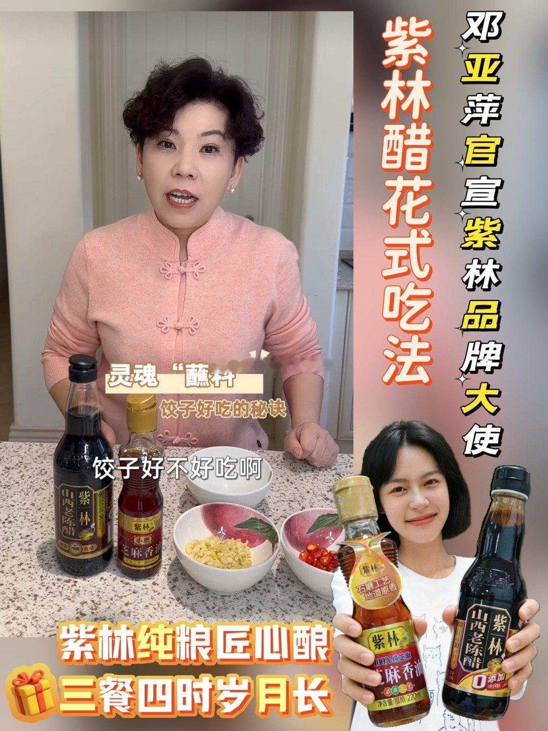 紫林醋花式吃法邓亚萍官宣紫林品牌大使 邓亚萍同款好醋冬至大如年,人间小团圆!🏮 在这个白昼最短、思念最长的日子,除了案板上砰砰的剁馅声和锅中翻腾的热气,最能点燃节日仪式感的,莫过于那一碟画龙点睛的饺子蘸料。🎉🎉🎉今天,我们迎来了一个特别的“团圆”——乒坛传奇、世界冠军邓亚萍女士,在这个寓意团圆与新生的传统节日,正式成为了山西紫林醋业的品牌大使。这仿佛是赛场与厨房、极致的拼搏与时间的匠心一次完美的相遇。邓亚萍在球台上“追求极致”的坚持,与紫林醋业在酿醋房里“一辈子只干一件事”的专注,可谓异曲同工。这份跨越领域的共鸣,让今天这碟蘸料,有了冠军的品质背书。要调出冠军级别的蘸料,核心在于选对那滴“灵魂之醋”。创立于2000年的山西紫林醋业,正是这份匠心的杰出代表。它源自“中国醋都”山西清徐,这里也被认为是山西老陈醋的发源地。紫林人将“一群人、一辈子、一件事”奉为企业信条,心无旁骛地守护着流传四百余年的古法酿造技艺。他们坚信“药材好,药才好”,而酿醋亦然。一瓶正宗的紫林山西老陈醋,必须精选优质高粱、大麦、豌豆等五谷为原料,历经“蒸、酵、熏、淋、陈”五大工艺、足足八十二道精细工序,方能酿就。✅其中,最关键的灵魂在于最后的“陈酿”。新醋需经历“夏伏晒、冬捞冰”的时光洗礼,通过日晒蒸发和寒冬捞去冰茬,让醋体浓缩,风味变得无比醇厚、酸香柔和。正因如此,根据国家标准,只有总酸度达到6度以上,并经过至少一年陈放的,才有资格被称为“山西老陈醋”。而紫林的“6度6年山西老陈醋”,更是将这份岁月的馈赠凝聚到极致,其酸香醇厚,回味绵长,是当之无愧的调味“天花板”。✅如今,紫林醋业已成长为中国食醋行业的龙头企业,产销量位居全国前列,其产品不仅走进千家万户,更远销海外。这份来自市场和时间的双重认可,让它成为我们厨房里最放心的选择。✅一碟完美的蘸料,讲究的是味道的层次与平衡。除了酸香沉稳的老陈醋,另一味点睛之笔便是小磨芝麻香油。它与机械榨取香油不同,采用的是古老的“水代法”工艺。✅具体而言,是将烘炒过的芝麻用石磨低温研磨(温度仅60-65℃),最大限度地保留芝麻的天然芳香物质和营养成分,之后再利用水油比重不同,将油从磨好的酱胚中置换出来。这种方法不添加任何化学溶剂,得到的香油香气浓郁扑鼻,口感醇正,能为蘸料注入一股无法替代的、温暖的坚果香气。👉我的“冠军同款”秘制蘸料方在了解了这两位“风味大将”的身世后,是时候请它们携手登场,演绎我家冬至餐桌上的“冠军同款”秘制蘸料了。这个方子简单,却极考究原料,秘诀就在于充分激发紫林醋的醇和小磨香油的香。✅灵魂配方紫林6度6年山西老陈醋:3汤匙。提供醇酸底味,是风味骨架。1️⃣特级小磨芝麻香油:1汤匙。赋予浓郁复合香气,柔和酸度,提升口感。2️⃣鲜味生抽:半汤匙。补充咸味与鲜味,让味道更立体。3️⃣蒜末、葱花、香菜末:各一小撮。增添清新辛香,破解油腻。4️⃣白糖或蜂蜜:少许(约小半茶匙)。关键的平衡大师,能柔和酸咸,使味道圆润回甘。5️⃣油泼辣子或小米辣圈:为喜欢热辣的朋友增添一抹亮色1. 先将蒜末、葱花、香菜末放入料碟。2. 依次淋入生抽、紫林陈醋,让固态香辛料初步入味。3. 轻轻撒上白糖。4. 最后,隆重地淋上那一圈小磨香油。当香油缓缓渗透下去,所有的味道瞬间被激活、融合,一股复合而诱人的香气扑鼻而来。🥟用一只薄皮大馅的饺子,轻轻蘸满这碟料汁送入口中——首先接触到的是香油的润和香,紧接着老陈醋醇厚而不尖锐的酸感打开味蕾,咸鲜微甜紧随其后,蒜香葱香在咀嚼中次第绽放。这滋味,正如我们平凡却温暖的生活,五味调和,历久弥新。冬至,是数九寒天的开始,也是春天希望的伏笔。邓亚萍选择在这一天与紫林醋业携手,仿佛在告诉我们:无论是赛场上的每一分,还是厨房里的每一滴,对极致的追求,终将换来时间的犒赏。🥟今天,我家餐桌上的这碟蘸料,因紫林的匠心与邓亚萍的坚持,而有了更深刻的意义。它不只是一味调料,更是对传统技艺的致敬,是对专注精神的认可,是连接至亲情感的温暖媒介。在这个团圆的节日,愿我们都能与所爱之人围坐,分享一盘热饺,一碟好料,品味这经由时间酿造、愈发醇香的“中国味道”与人间温情。冬至安康,团圆喜乐! 🥟✨