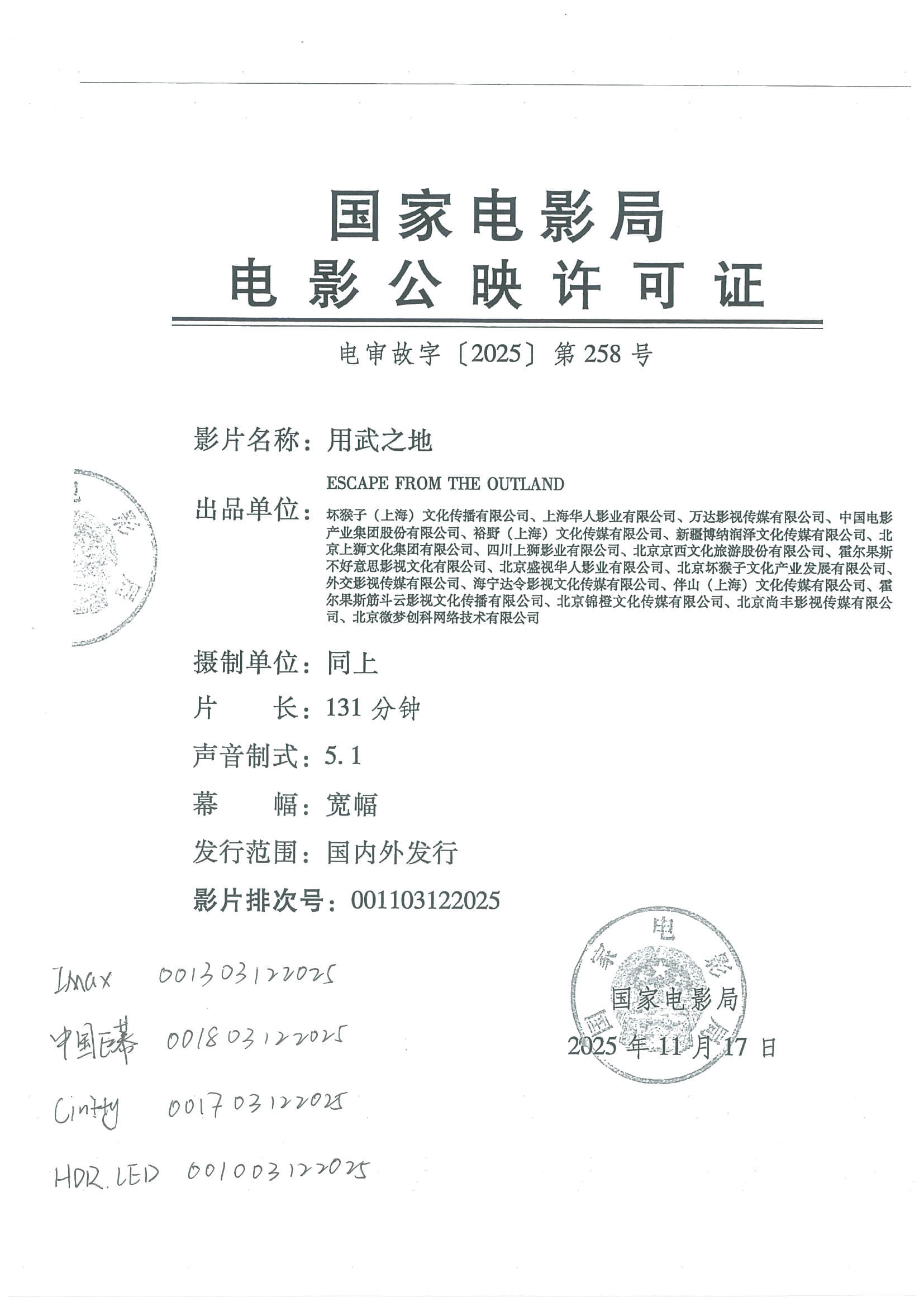 影讯 12.31申奥执导用武之地 影片信息(14点上片)国 别:中国类 型:战争、剧情、动作片 长:131分钟幕 幅:宽银幕(IMAX全片1.9特殊画幅)声 制:见发行版本语 别:国语发行版本:数字2D(5.1、DTS:X)、HDR LED、IMAX 5.0 2D、CINITY 2D、CINITY LED 2D、CGS 2D(5.1、DTS:X)、4DX放映期限:2025年12月31日 14:00 - 2026年02月01日