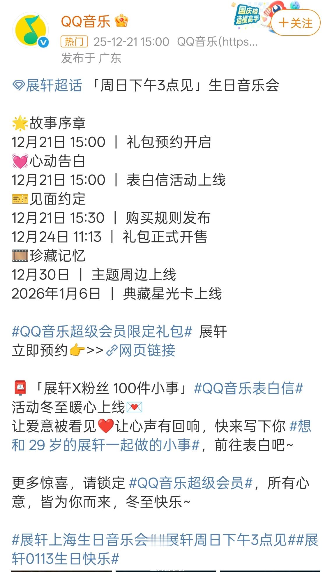 展轩QQ音乐周日下午3点见! QQ音乐 展轩