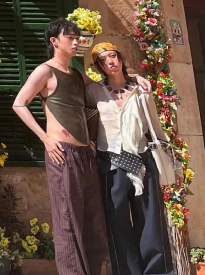 伊能静23岁儿子恩利现身西班牙旅游,他穿着皮质肚兜,露出后背,显出不一样的时尚