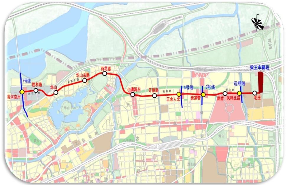 济南地铁9号线 济南地铁9号线是济南东北部城区的重要骨干线,目前全线12座车站主体结构已全部封顶,预计2026年开通。 9号线西起黄河南岸站,东至毛庄站,全长15.3公里,均为地下线,设12座车站,含4座换乘站,未来可与3号线、6号线、7号线及远期规划线路换乘。 全线车站土建已完工,7个盾构区间双线贯通,2个单线贯通。技术亮点采用高密度混凝土喷入、全天候监测等工艺,并注重环保降噪。 它串联华山、王舍人、济钢等片区,强化与济南东站、遥墙机场的衔接。坐等开通,以后出行又多了新选择! 济南轨道 济南地铁线 地铁8号9号