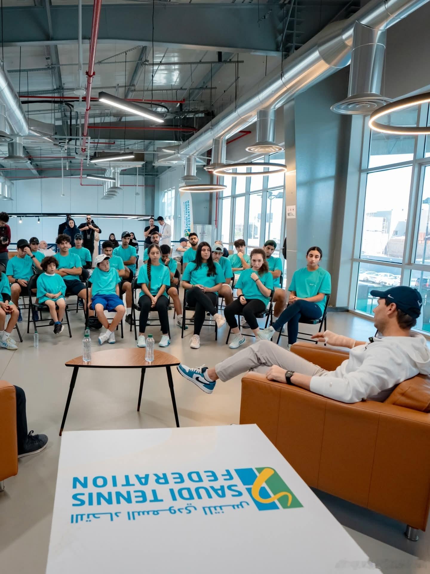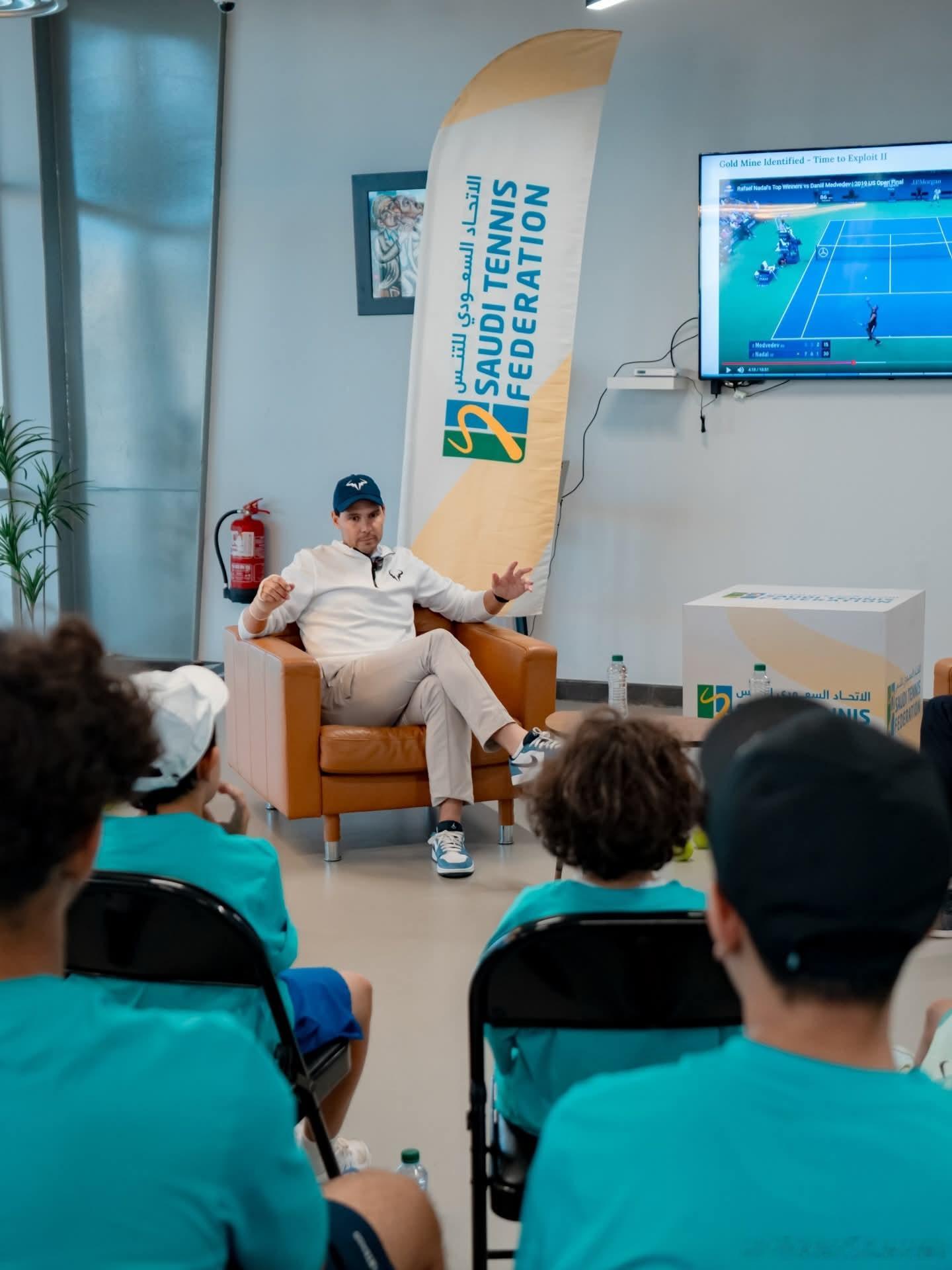 豆教练上线了!纳达尔抵达吉达观看西班牙🇪🇸新生代的比赛,并且开了青少年公开课。感觉退役的纳达尔真的很适合做网球推广工作,图三这姿势,名宿的感觉一下子就出来了。网球talking大会