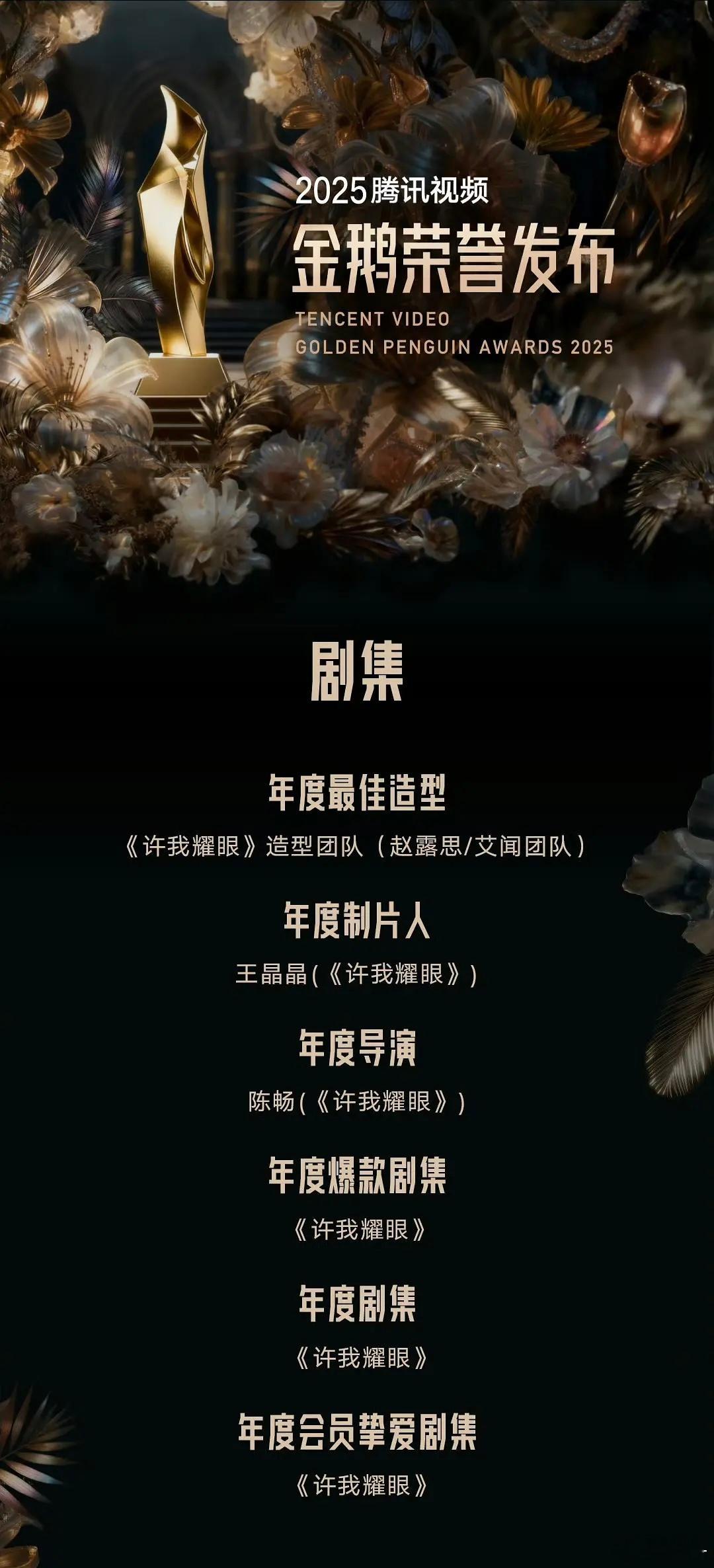 22年扫黑风暴星汉灿烂,23年长相思,24年庆余年25年许我耀眼,今晚含金量最高的奖也是最重要的奖