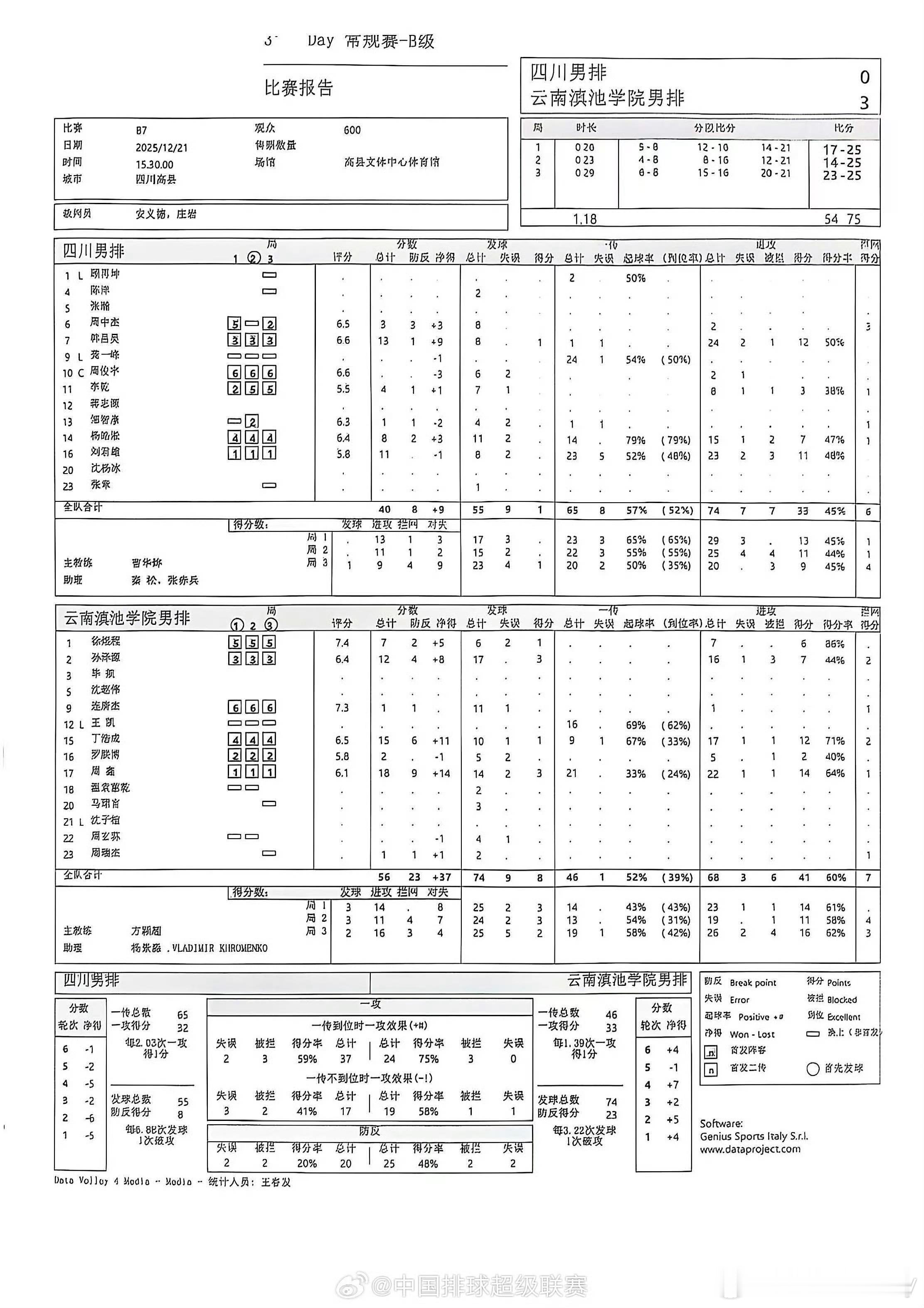 两局都不上18分,第二局才14分,大四川都被云南扫得飞起,真的是无话可说。。。。。,只有失望。排超四川男排