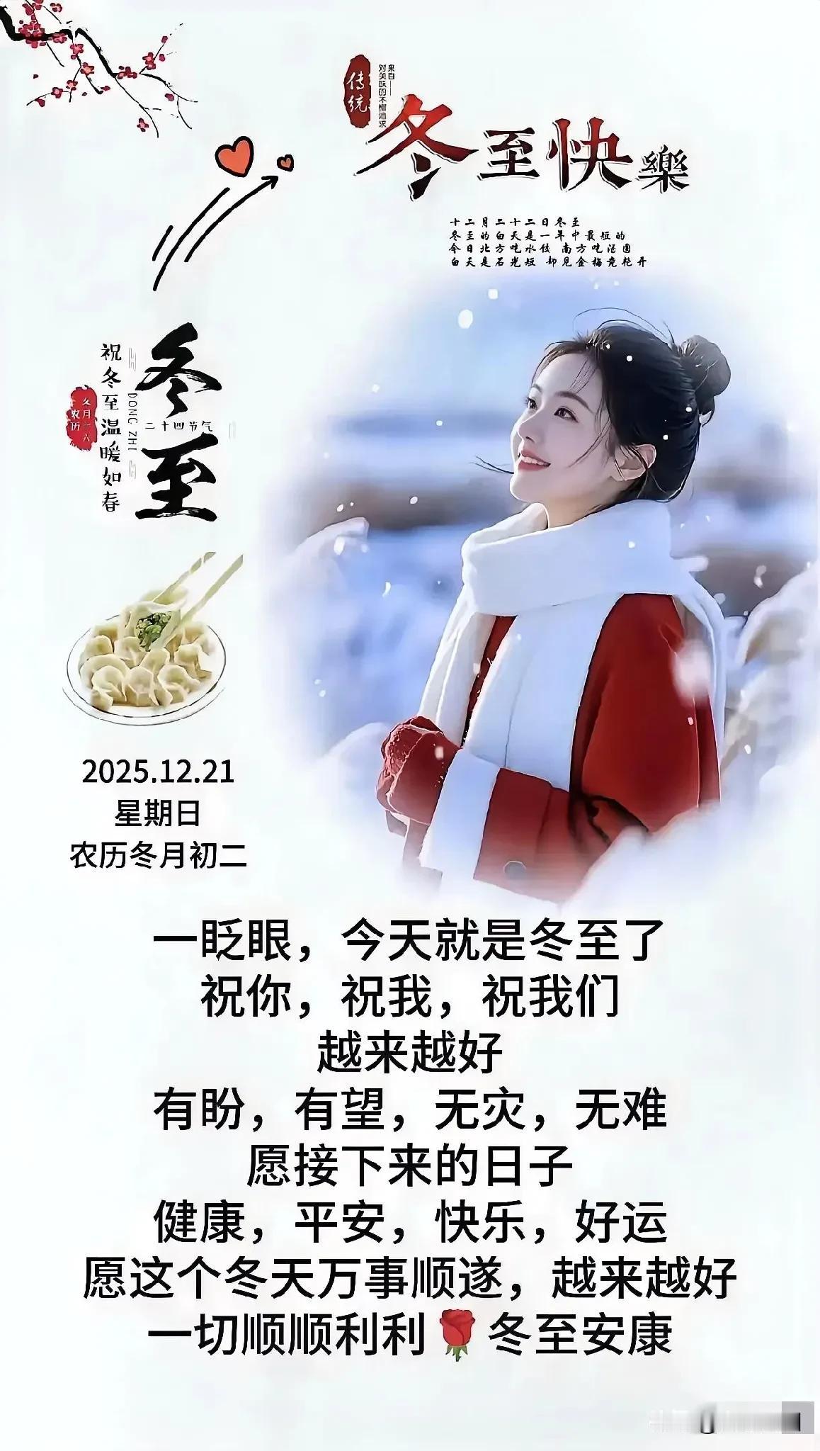 《冬至的第一条祝福》,2025.12.21冬至。 冬至的第一条祝福,我想送给你。