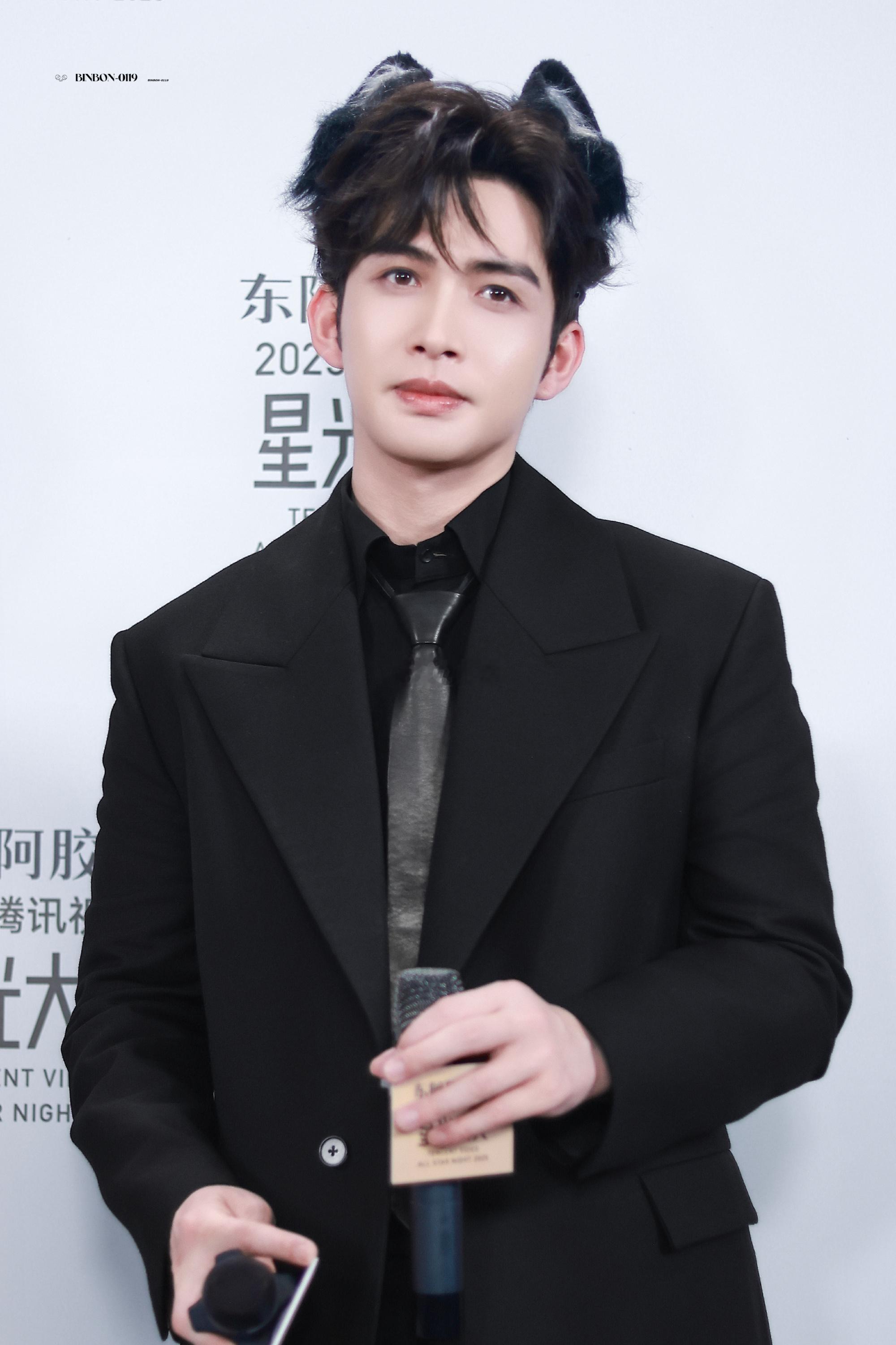 轮到张彬彬给自己提衣摆了 这次造型算是把“帅”和“好笑”结合得很完美。黑西装+超长拖尾负责美,他提衣摆的动作负责萌,两者叠加,让这一套在众多红毯造型里显得格外有记忆点,看完只想说:多来点这种反差。