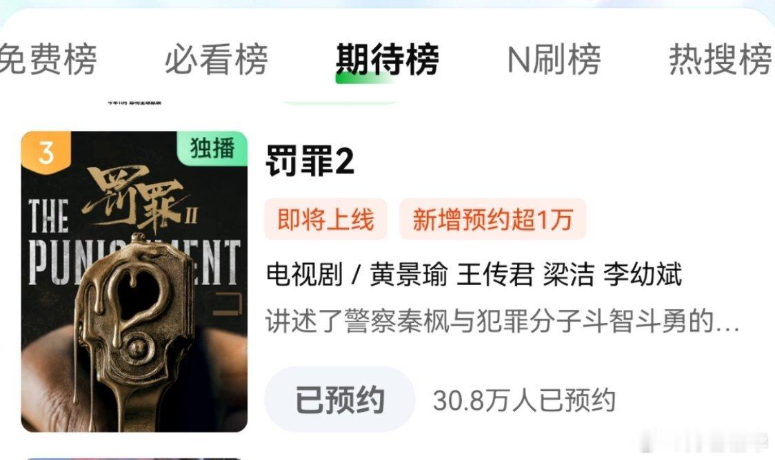 黄景瑜罚罪2黄景瑜秦枫 预约破30万,新增一张冬至海报,片花依旧无。