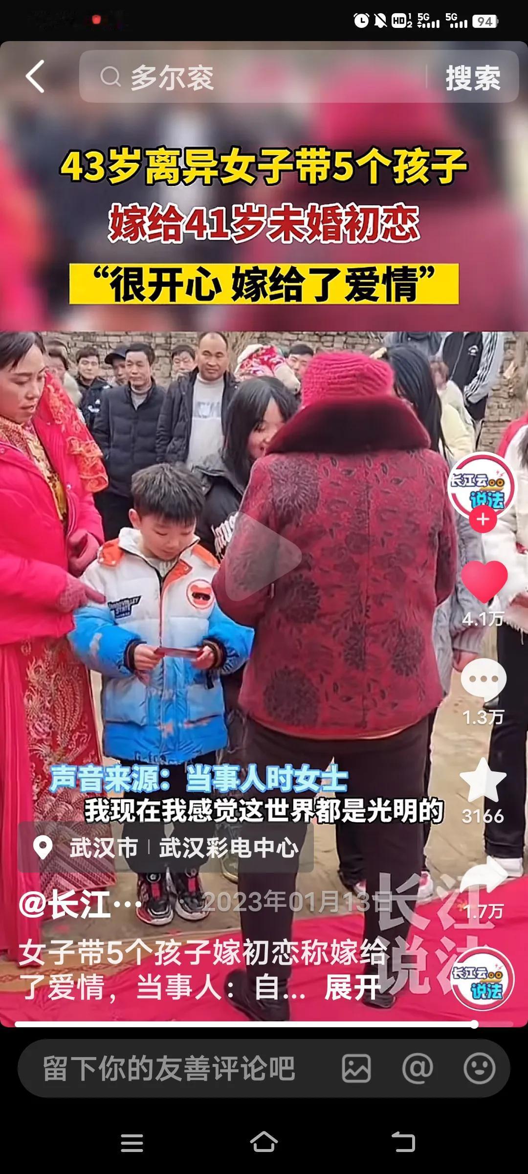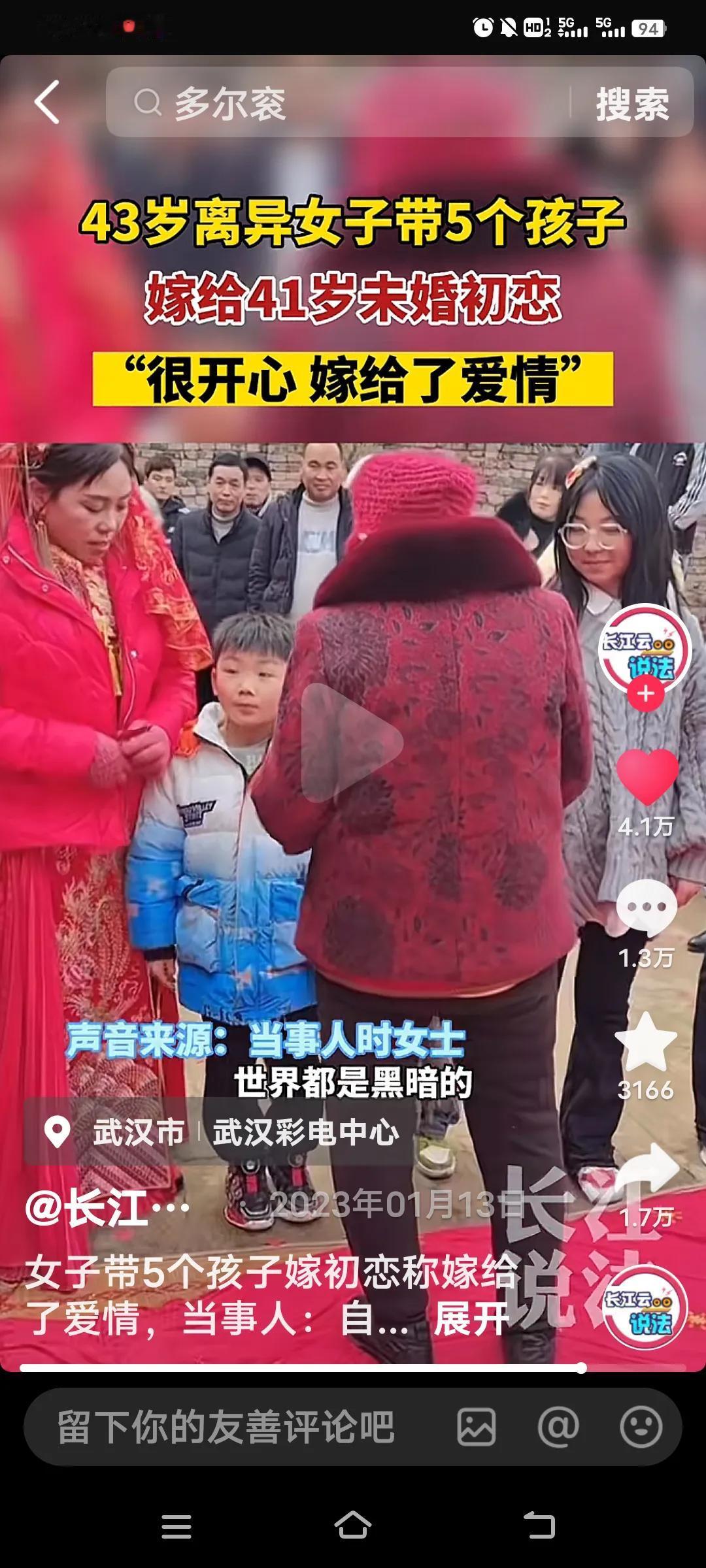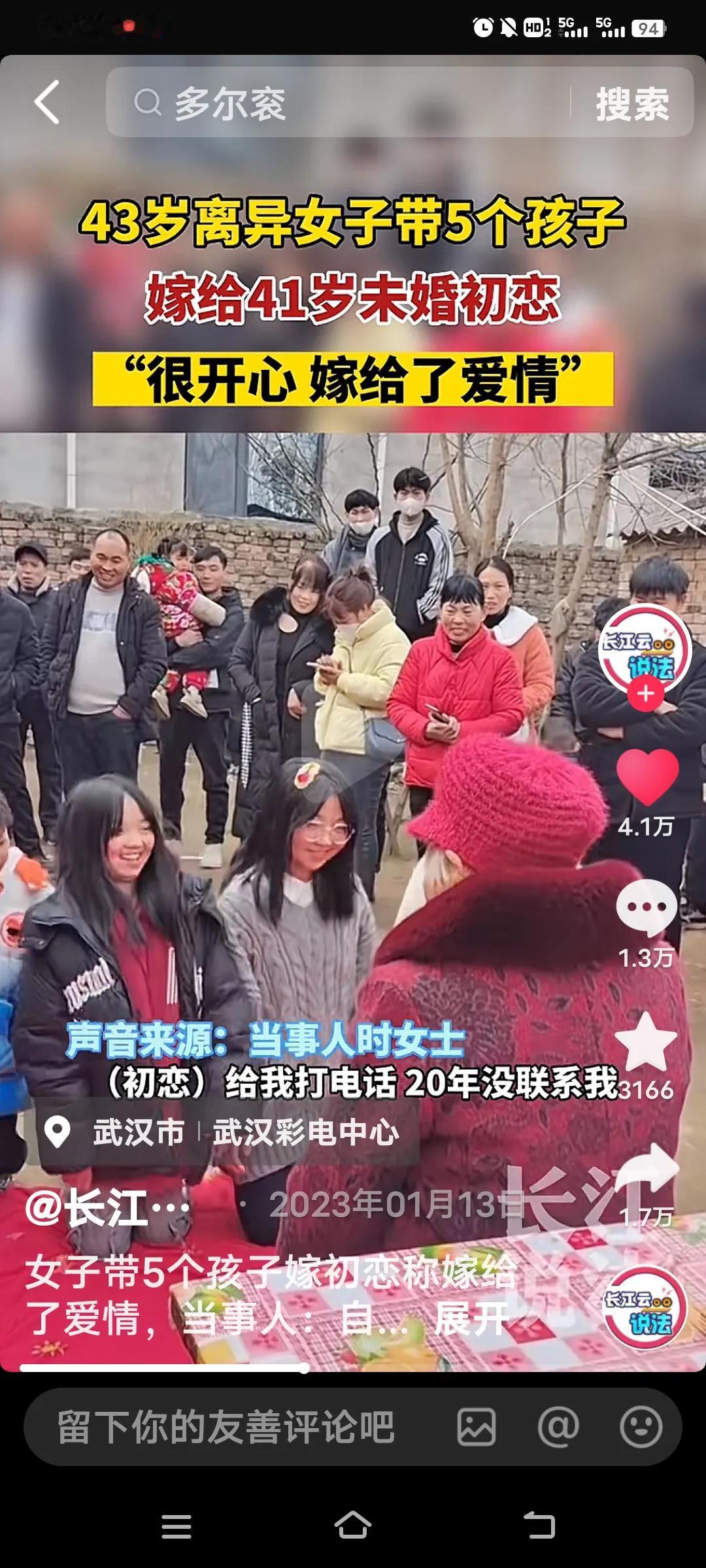 河南周口一位43岁的女子,带着5个孩子,嫁给了41岁的未婚初恋。这样的情节以往只